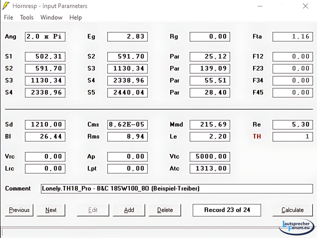 hier ist die Hornresp-Eingabemaske für das Lonely.TH18_Pro