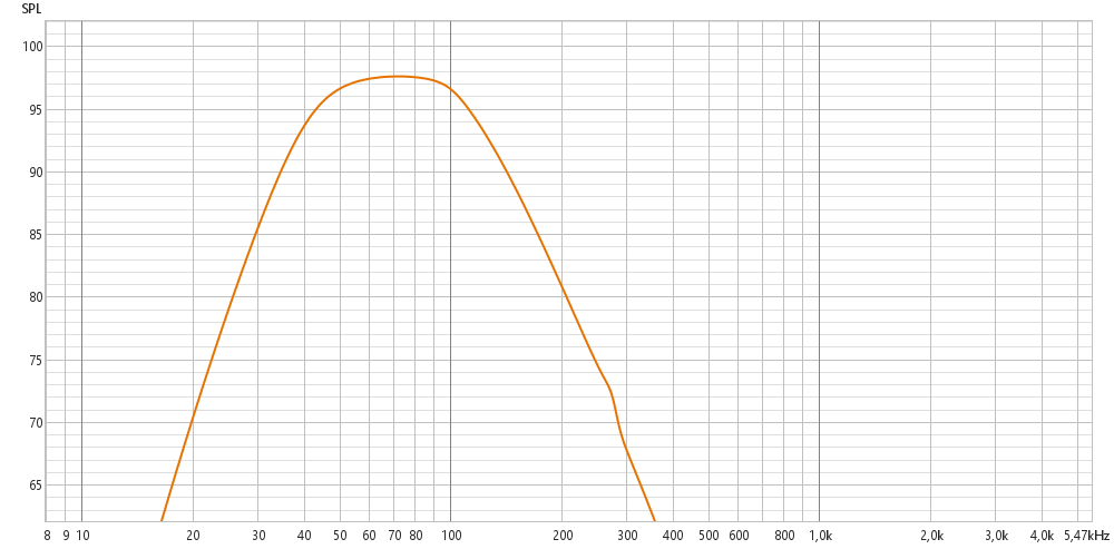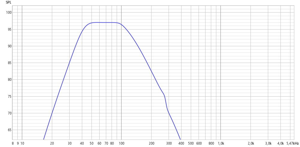 TBW100 mit xo (HP 12but, LP 18but) + 0,8db EQ auf ca. 97Hz