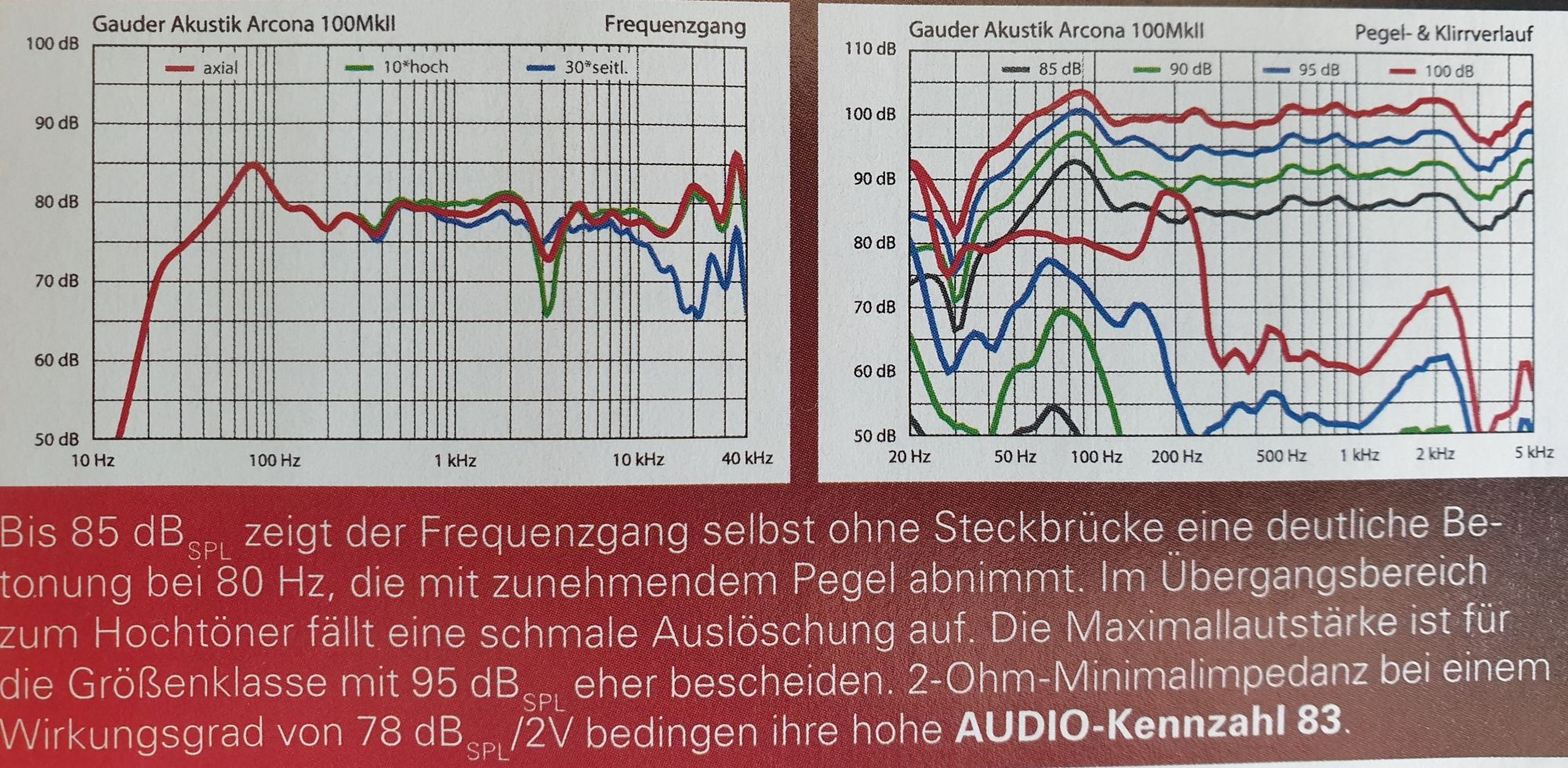 Allerdings weckte die Arcona 100 MK II auch das Interesse von Leuten, welche bedingt durch ihren Beruf schon sehr viel unterschiedliche Lautsprecher hörten und von daher wohl kaum durch irgendwelche akustischen Tricks zu beeindrucken sind.