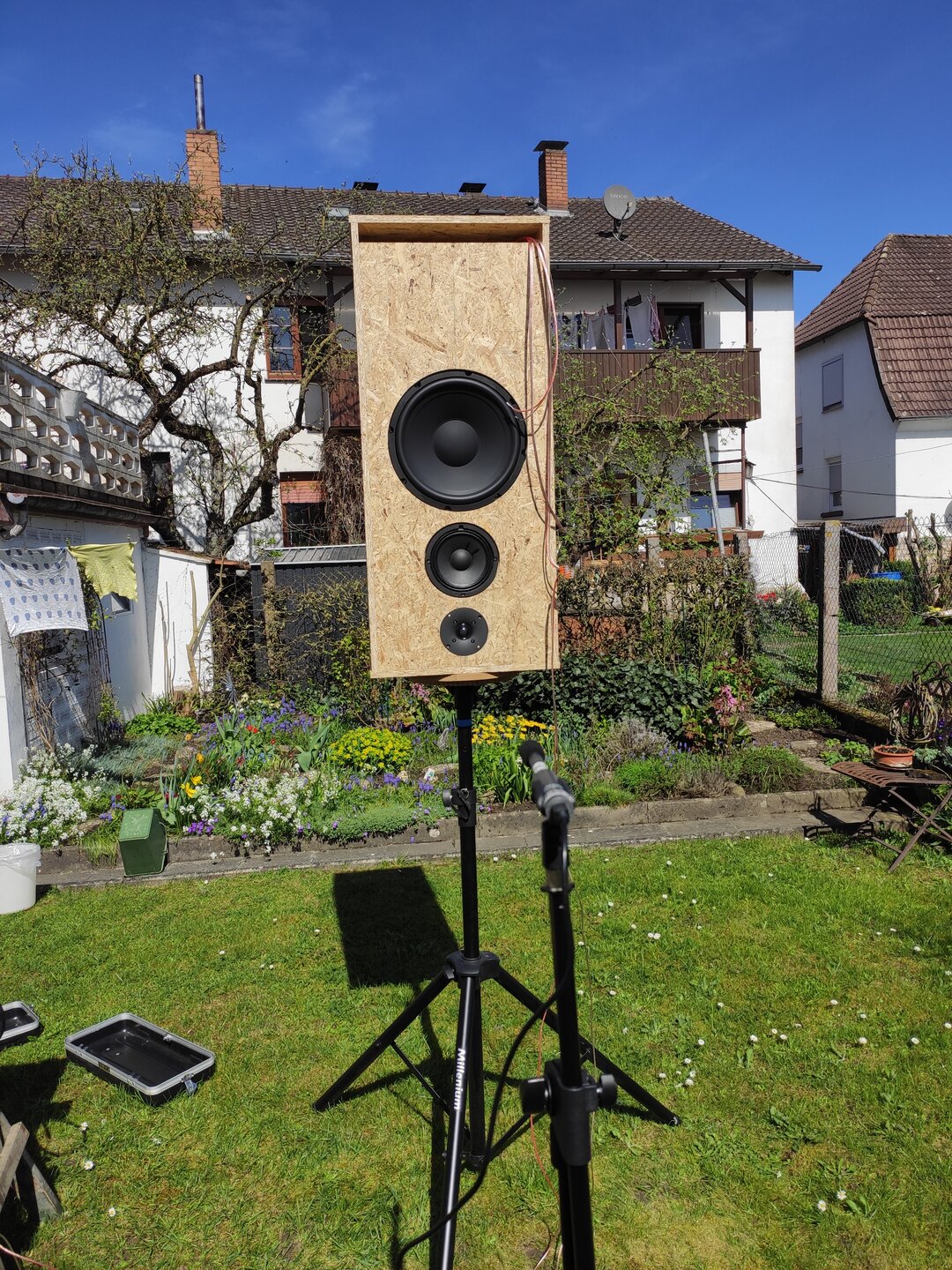 Klanglich bin ich zufrieden, ich bin wahrscheinlich etwas zu an PA gewöhnt, fühlt sich im Hochton irgendwie nicht ganz so direkt an, obwohl der Hochtöner laut Messung schon etwas "lauter" spielt. Im Tiefton schön satt. Der Tieftöner und der Mitteltöner können auf jeden Fall ordentlich Leistung vertragen, beim Hochtöner bin ich mir da nicht so sicher, da der komplett ohne L-Pad an der Weiche hängt.