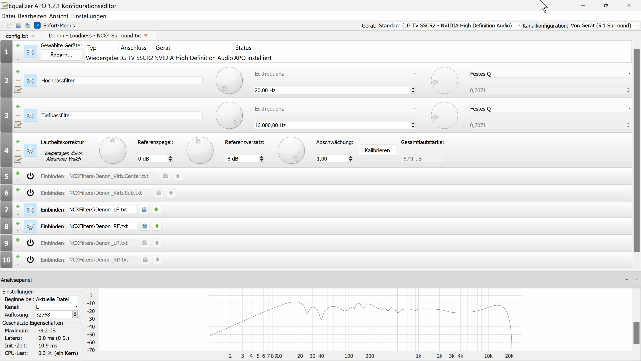- mit eAPO können nun auch weitere Dinge umgesetzt werden, wie Raumeinmessung, Kanal-Klonen, Loudness-Kurve, uvm.
