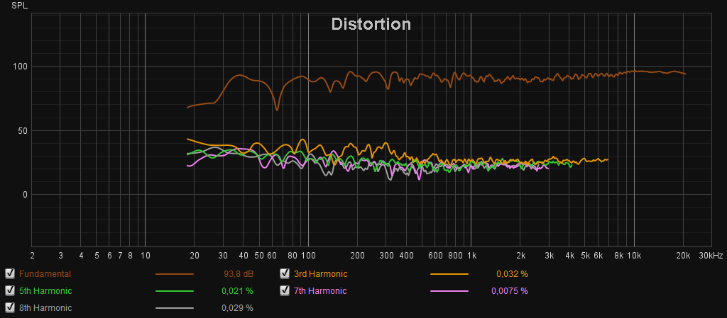 Wobei man sagen muss, dass die Hochtonverzerrung etwas übertrieben wahrgenommen wird. 96 dB sind schon echt übel Laut und da landet der Tweeter bei 1-2 % THD. Bei 96dB ist da eher der erste Gedanke "mach mal leiser" anstatt "das verzerrt jetzt aber etwas ab 2 Khz".