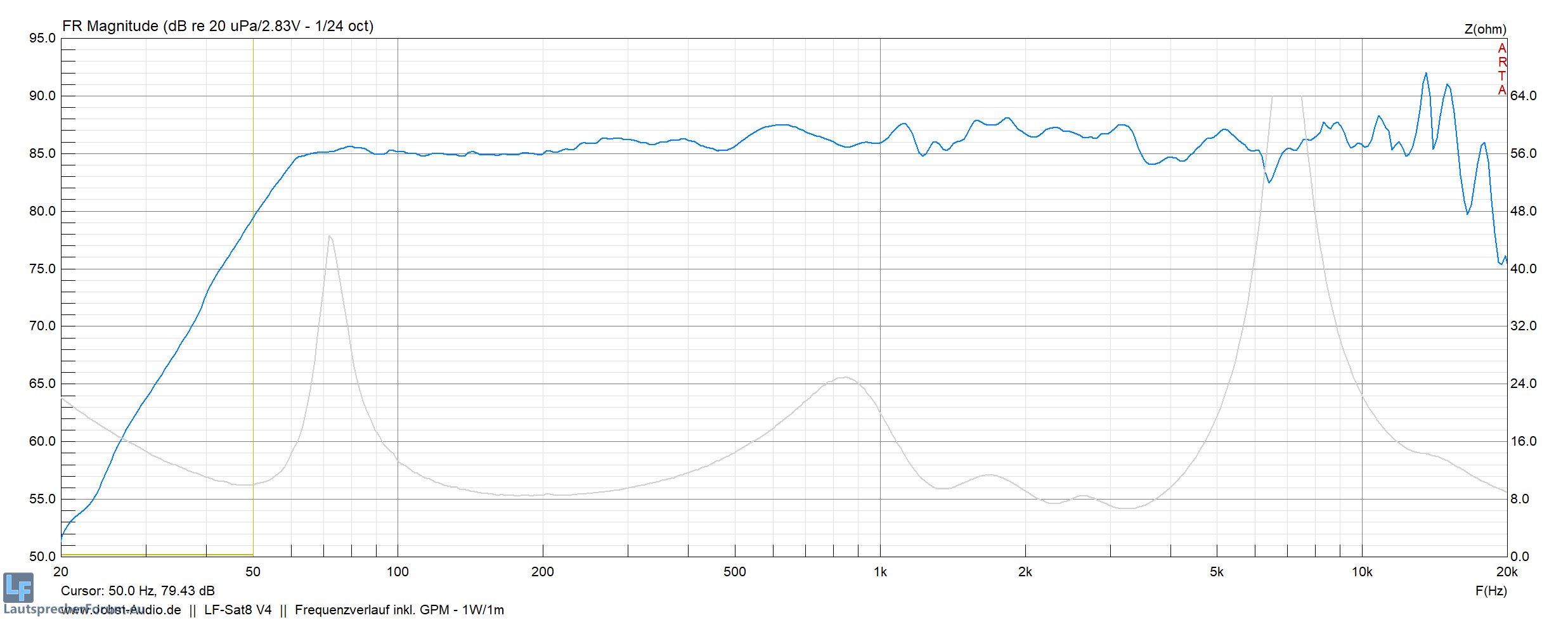 - Die Impedanz liegt nun bei nominellen 8 Ohm, Zmin ist raufgewandert auf 6,65 Ohm