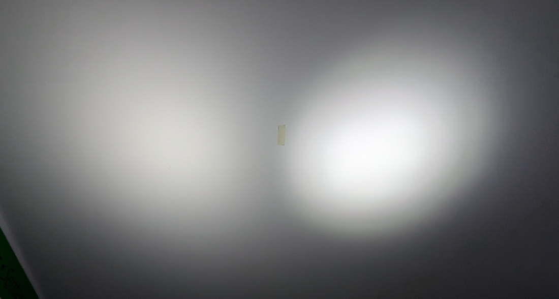 Und warum das Ganze? So ist das Lichtbild von zwei Scheinwerfern ohne Filter, wobei der Abstand zur beleuchteten Fläche nur ein halber Meter war: