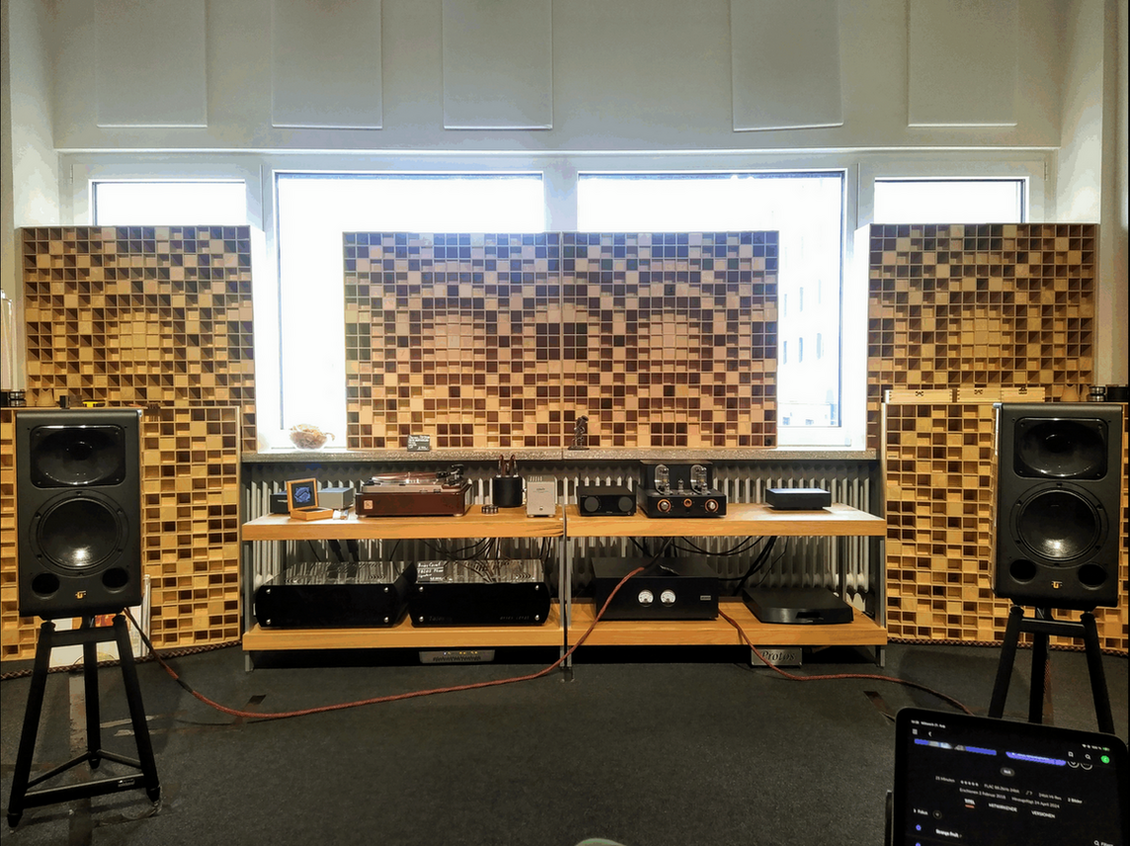 Heute hatte ich nochmal ne Stunde mit den kleinen JBL (jbl 4329p) im JBL/Harmanstudio. Die akustische Raumbehandlung fand ich ganz schick.