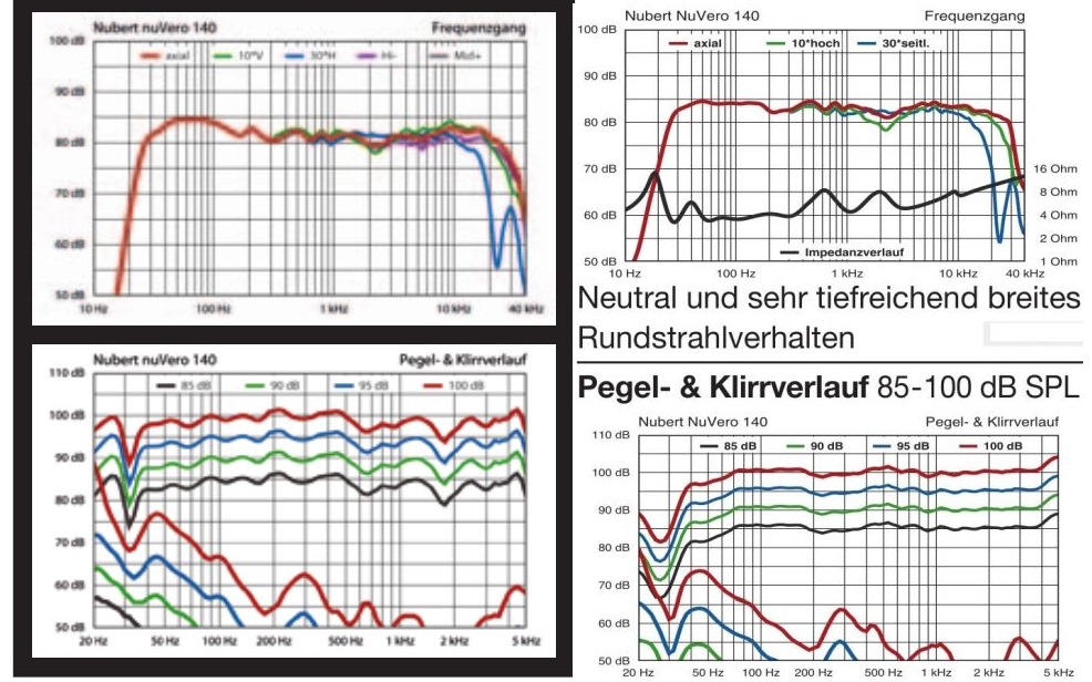 Des weiteren ist der pegel verlauf (wenn die messung nicht ganz zu kübeln ist) so, wie ich ihn live hörte. Wellig und meilenweit von einer nuVero 140. Viel bass, ohne die knackigkeit einer 140er. Durchaus möglich, daß die verzerrungen im nuZeo bass, den bass verwaschen klingen lassen.