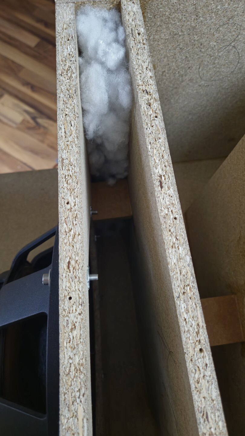 Die gut +1dB erhöhte Resonanz bei ca. 165Hz wollte ich mit paar Gramm mehr an Bedämpfung "erniedrigen". :D