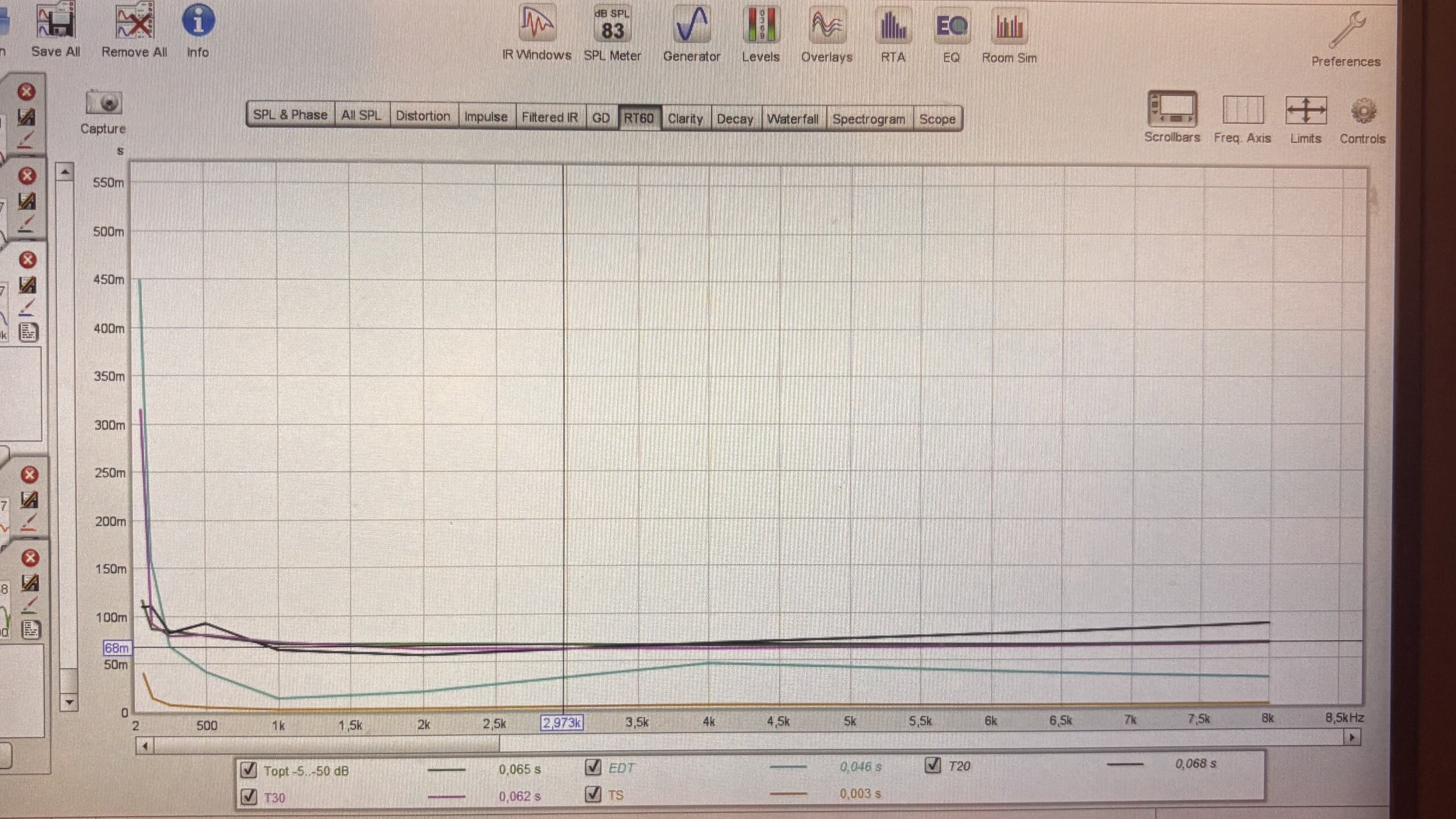 Das ist eine Messung von 15-20.000 Hz, zeigt aber nur bis 8 KHz an in RT60
