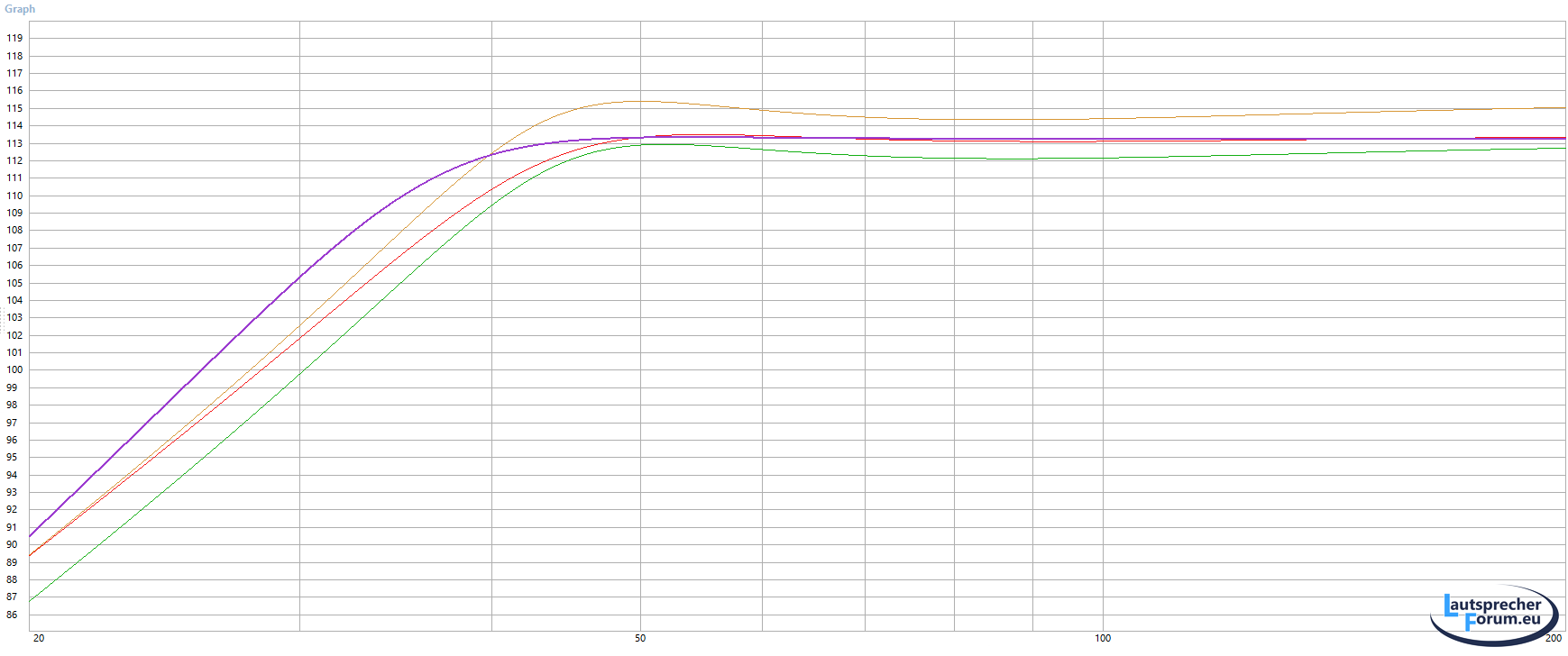 Vom Pegel her musst du dich an die Kalotte halten, wird diese gerade gebogen, landest du eher im Bereich 88-90dB.