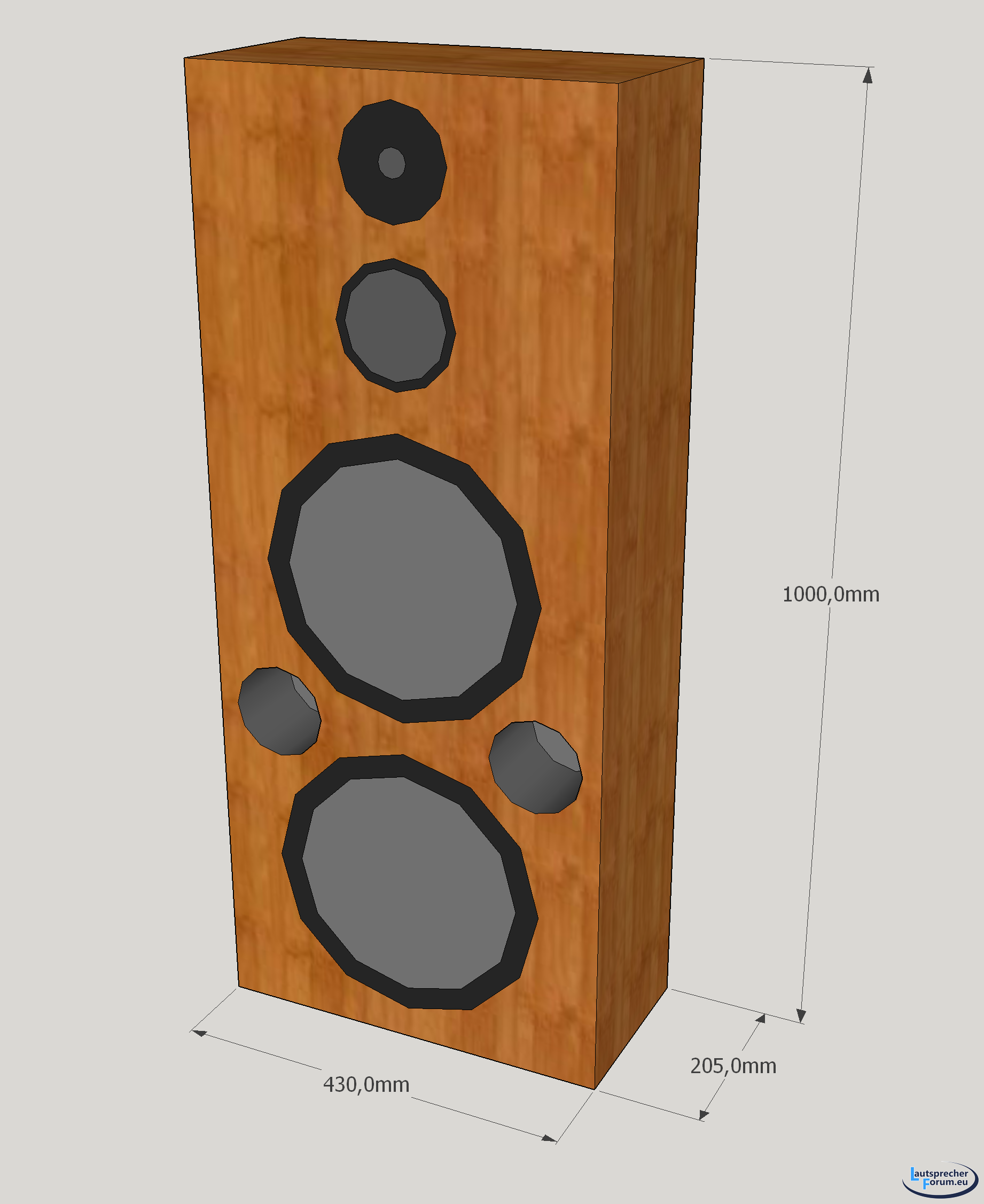 Dabei ist aber zu sagen, dass das Holz mit 100€ sehr billig war, und je nachdem welches Leimholz man möchte, das auch gerne 200€ pro Lautsprecher werden können.