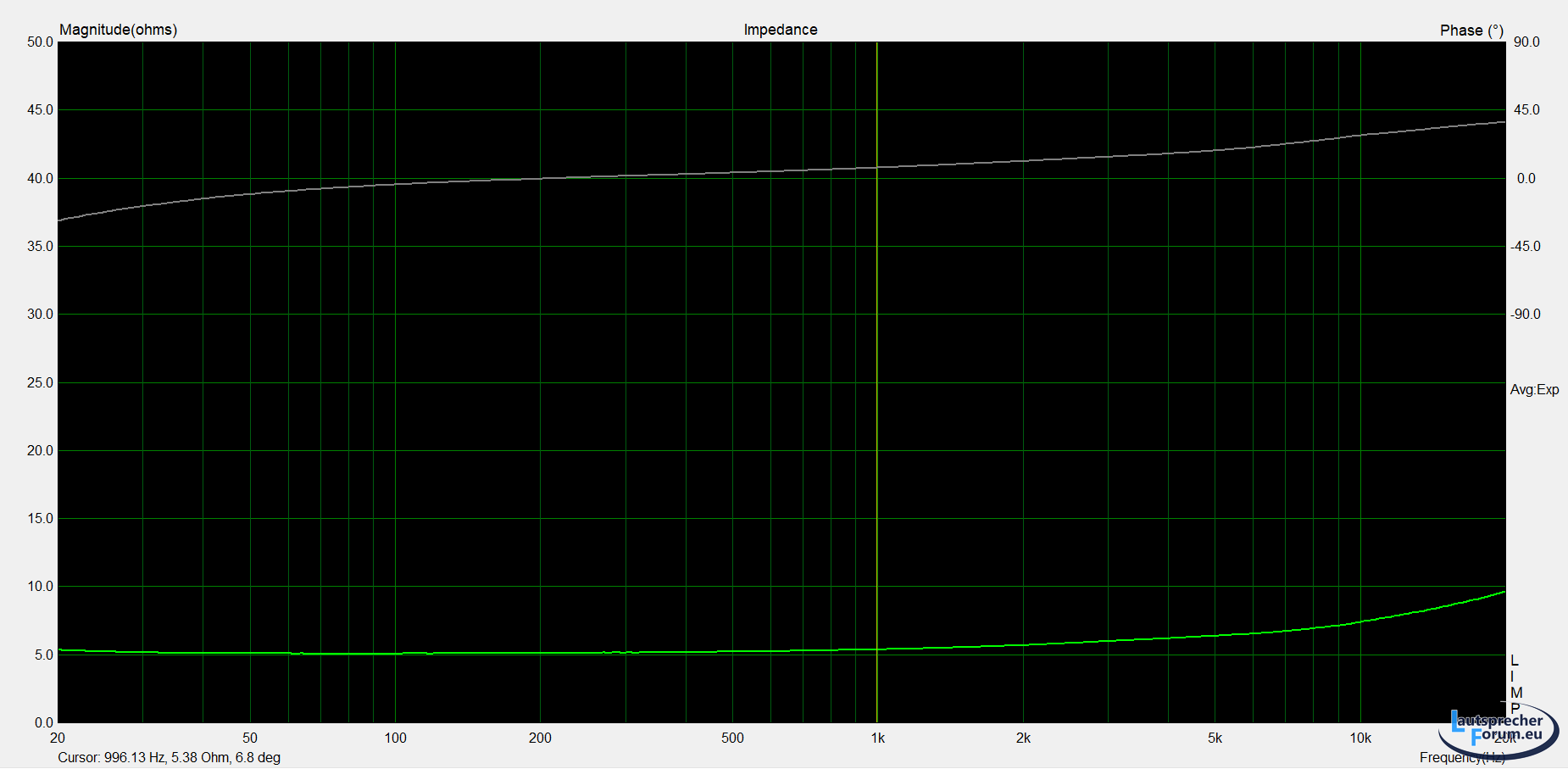 GPM Messung vom Tieftöner, nicht Pegelkalibriert, 1/6 Smoothing.