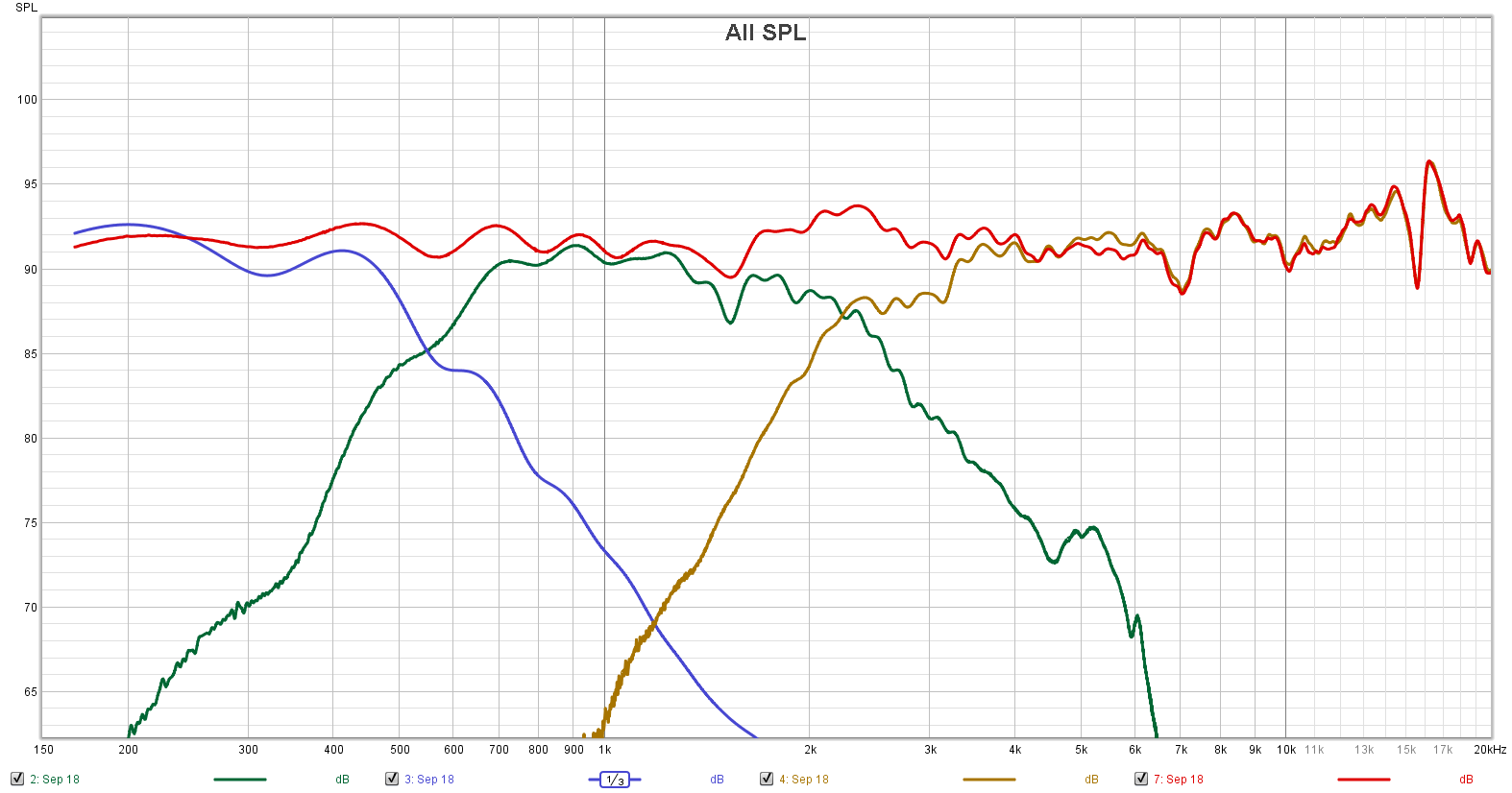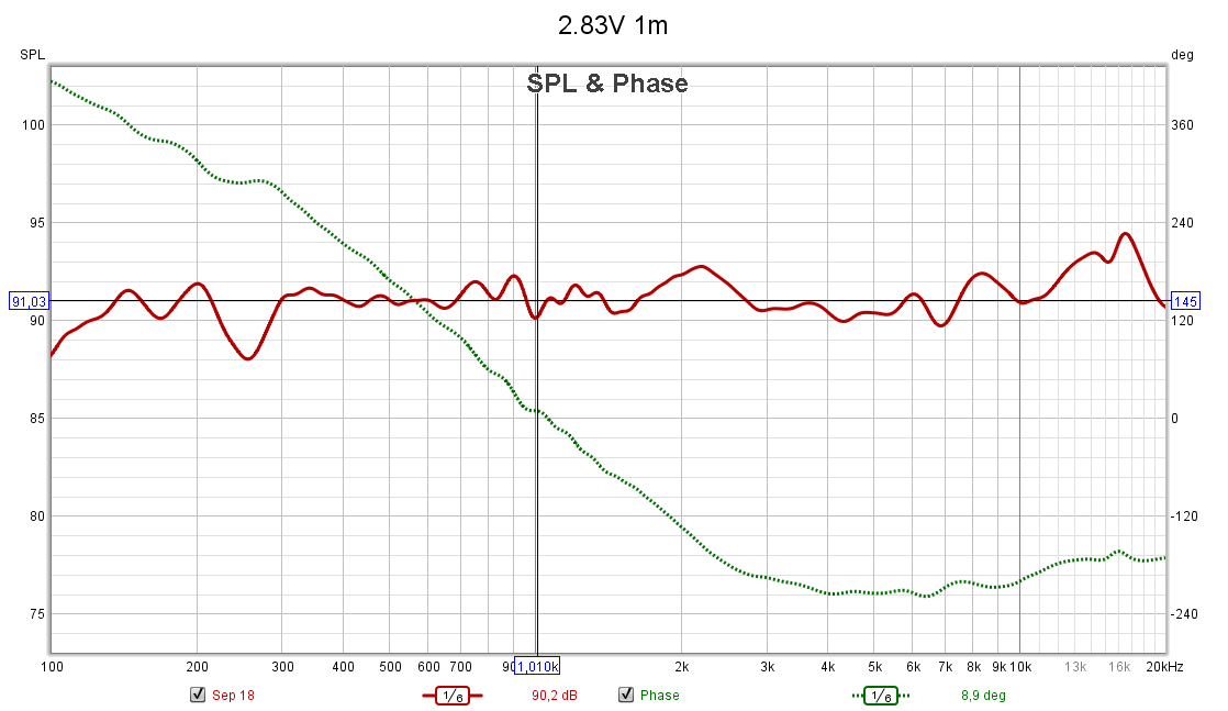 Klanglich bin ich zufrieden, ich bin wahrscheinlich etwas zu an PA gewöhnt, fühlt sich im Hochton irgendwie nicht ganz so direkt an, obwohl der Hochtöner laut Messung schon etwas "lauter" spielt. Im Tiefton schön satt. Der Tieftöner und der Mitteltöner können auf jeden Fall ordentlich Leistung vertragen, beim Hochtöner bin ich mir da nicht so sicher, da der komplett ohne L-Pad an der Weiche hängt.