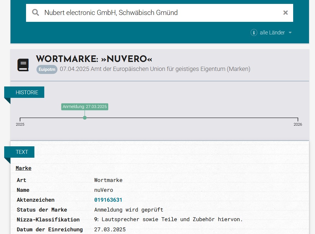 Selbstverständlich wird diese Bezeichnung von Nubert nicht als Wortmarke verwendet. Fände ich auch einfallslos.
