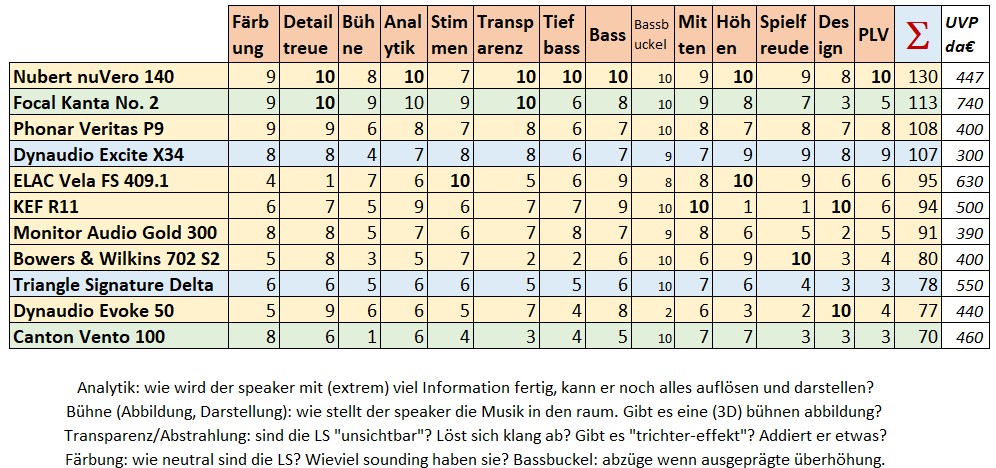 Ich finde, diese Bewertungen können bestenfalls für den individuellen Käufer als kleines Indiz herhalten, wo es klanglich in welche Richtung eines Lautsprechers geht…