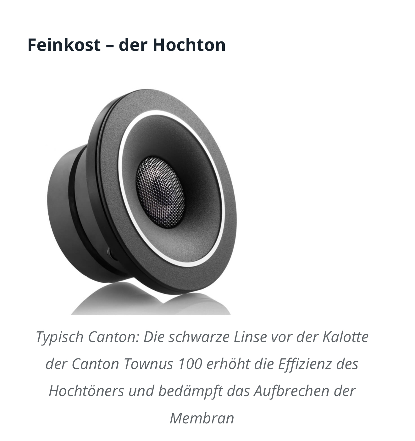 Canton setzt ähnliches auch heute noch bei seinen Lautsprecherserien mit Metall-Hochtöner ein. Etwa bei der Townus.