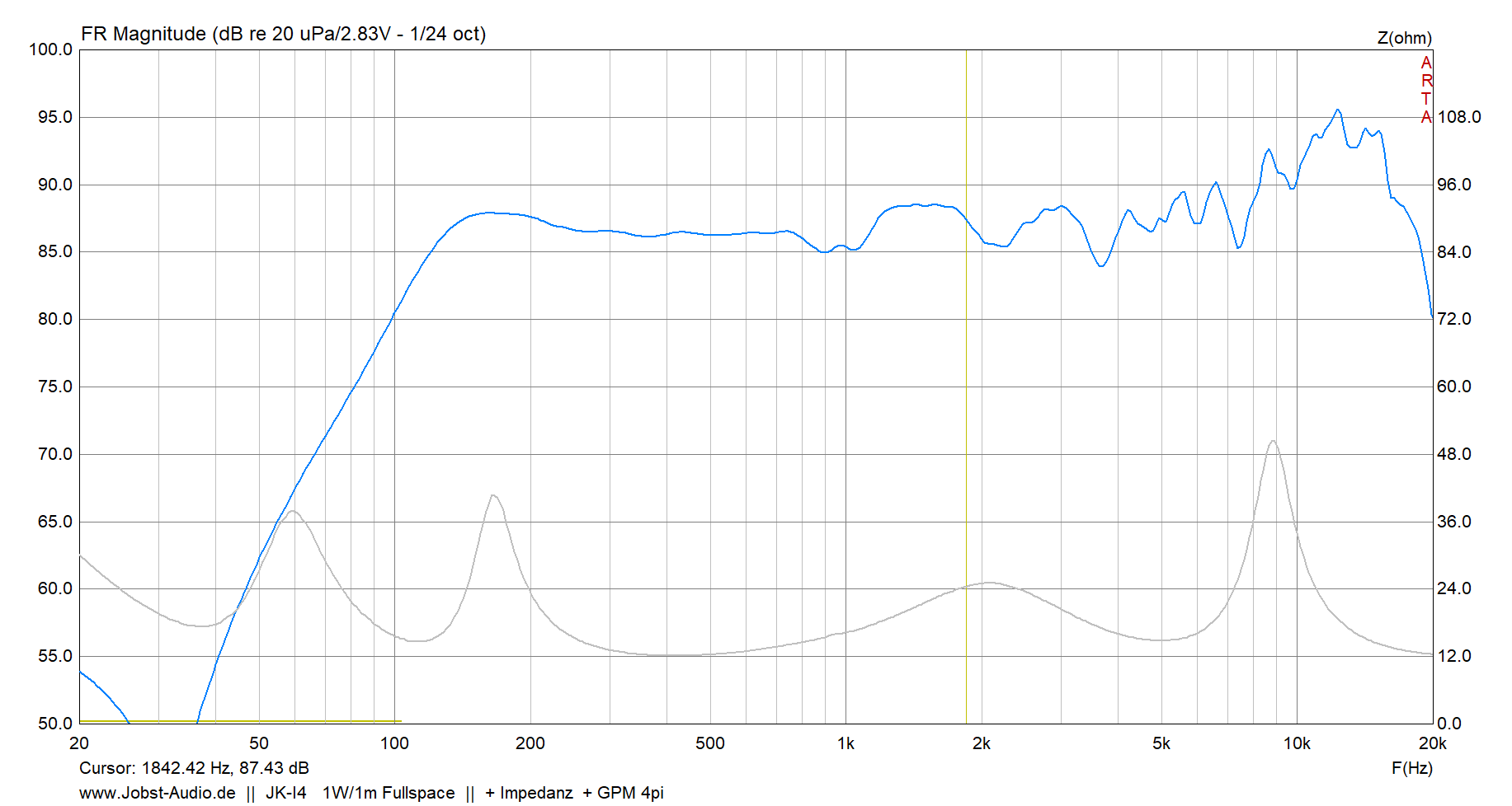 Tuning: ca 102Hz roh (mit HP+Wolle, final ca 123Hz)