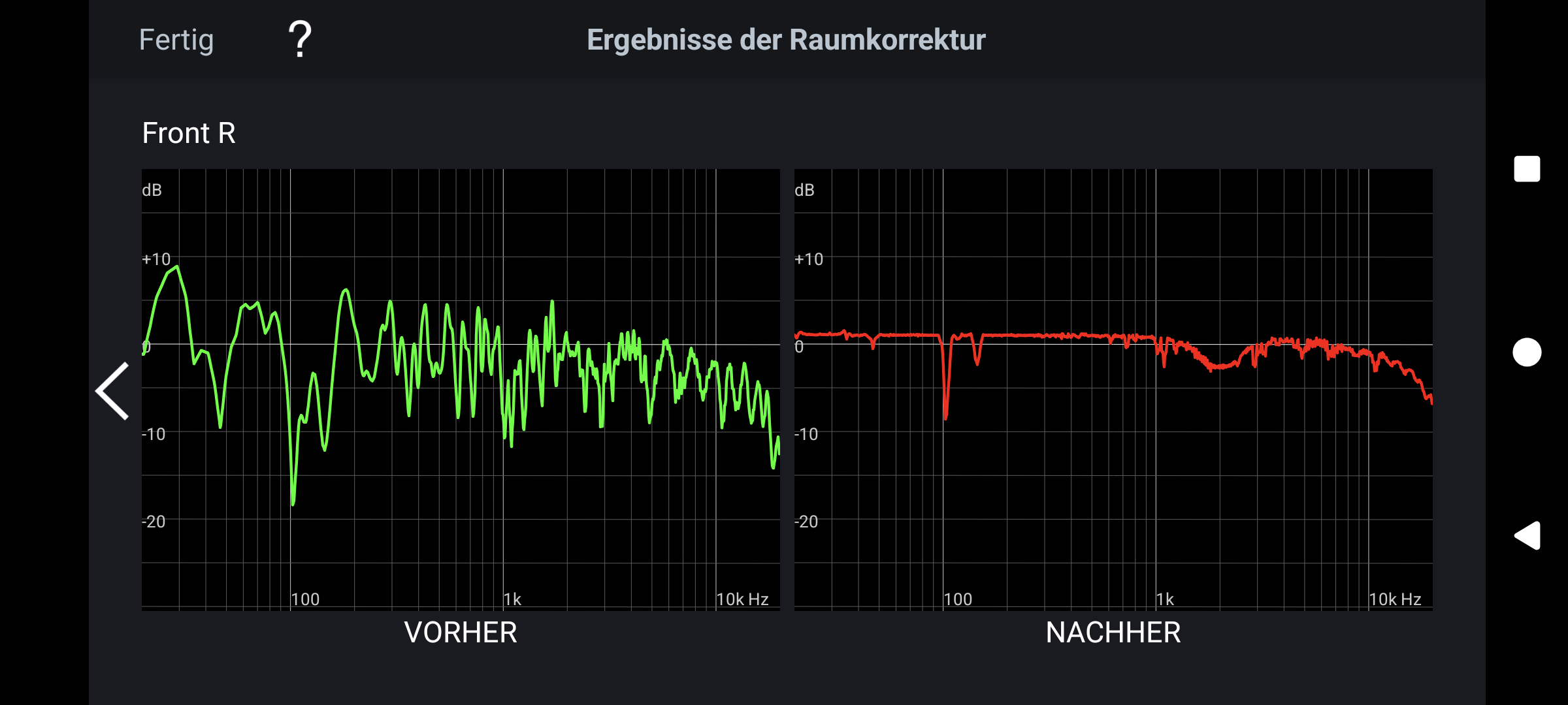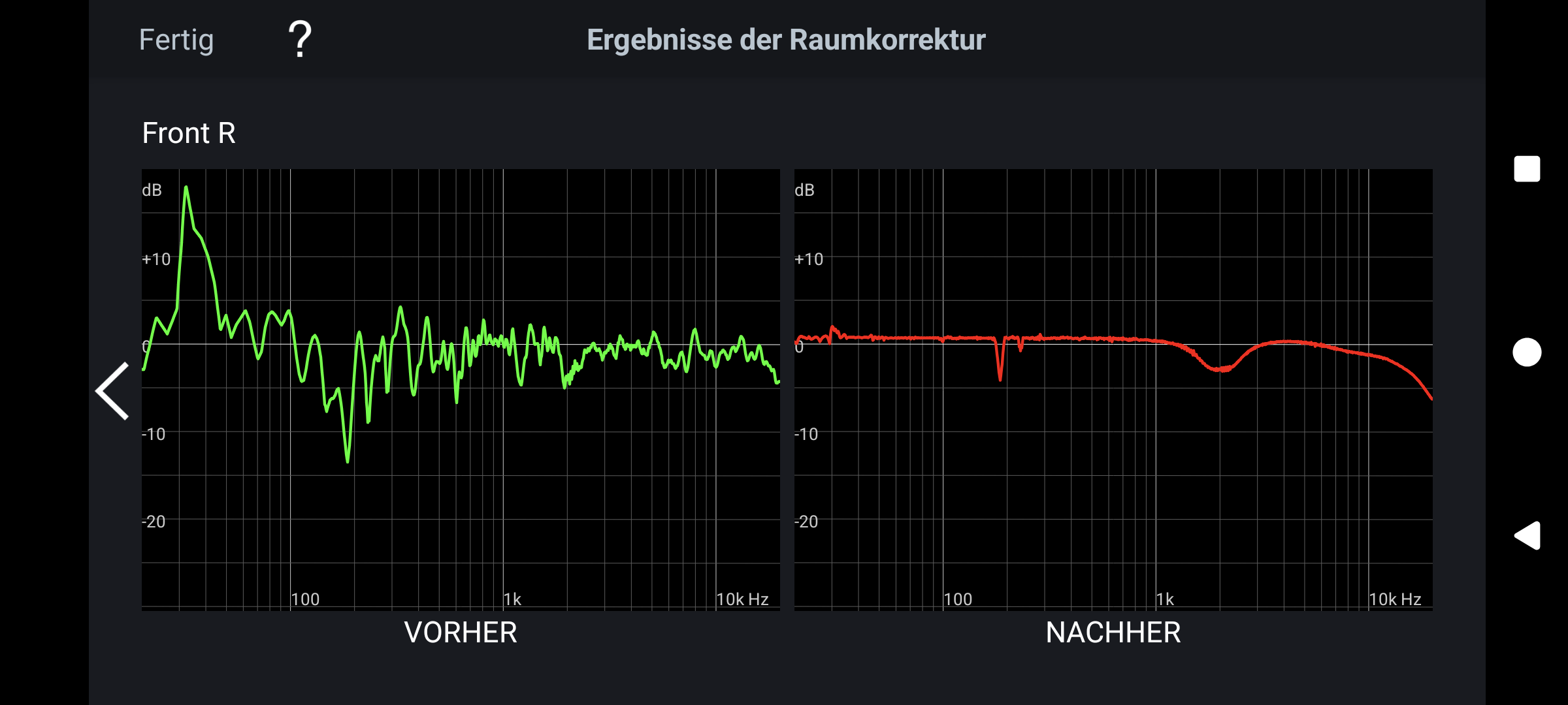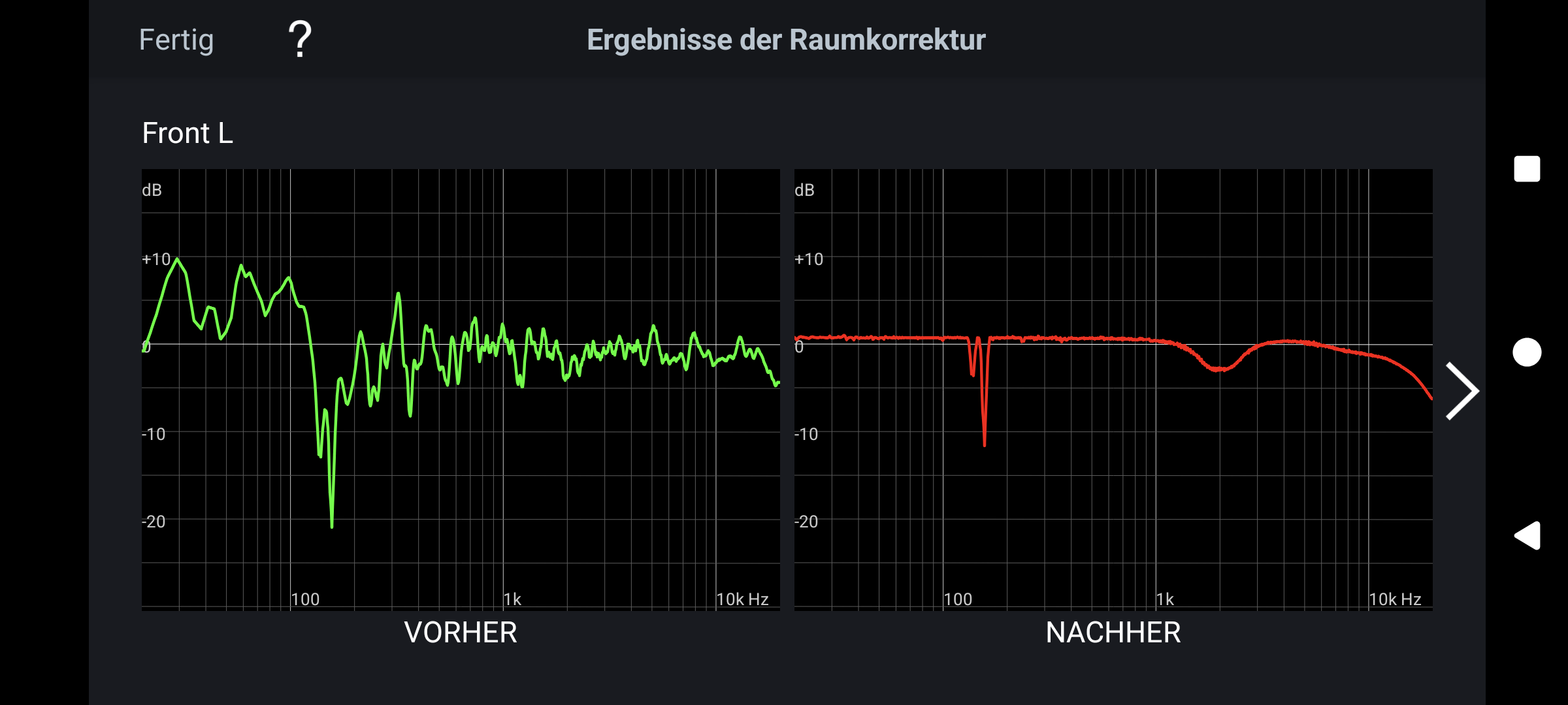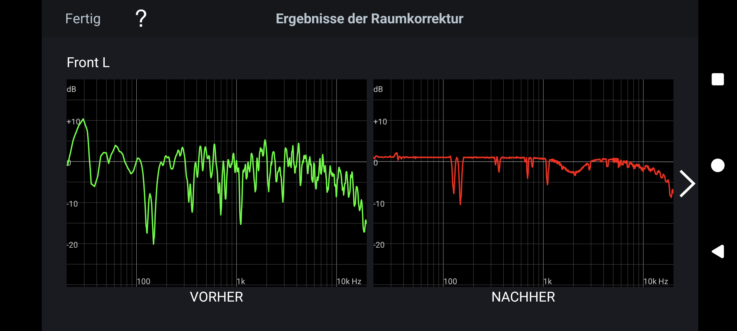 Der AVR, Audyssey muss gar nicht viel eingreifen, nur bei 100hz bis 200hz am linken LS ist ein Loch.