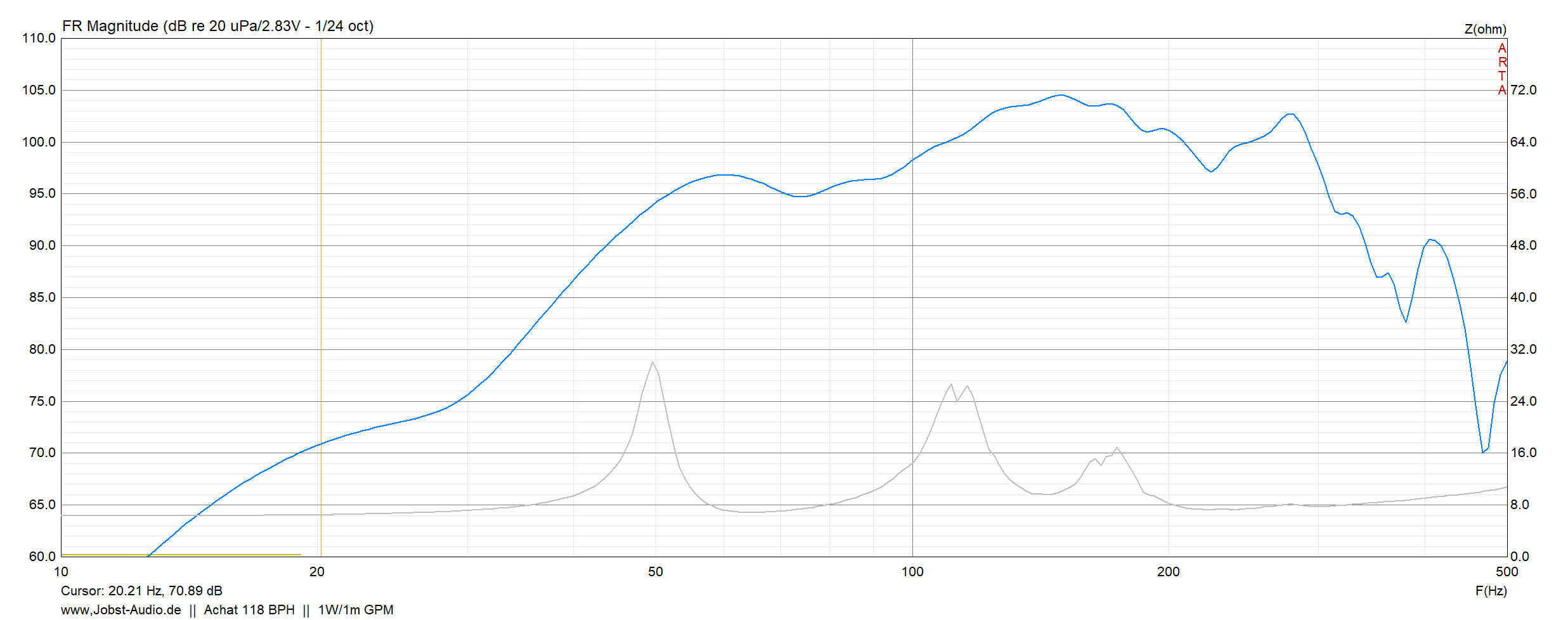 Z1min liegt bei 4,29 Ohm, somit liegt die nominelle Impedanz der Box bei 5 Ohm, nicht 8 Ohm.