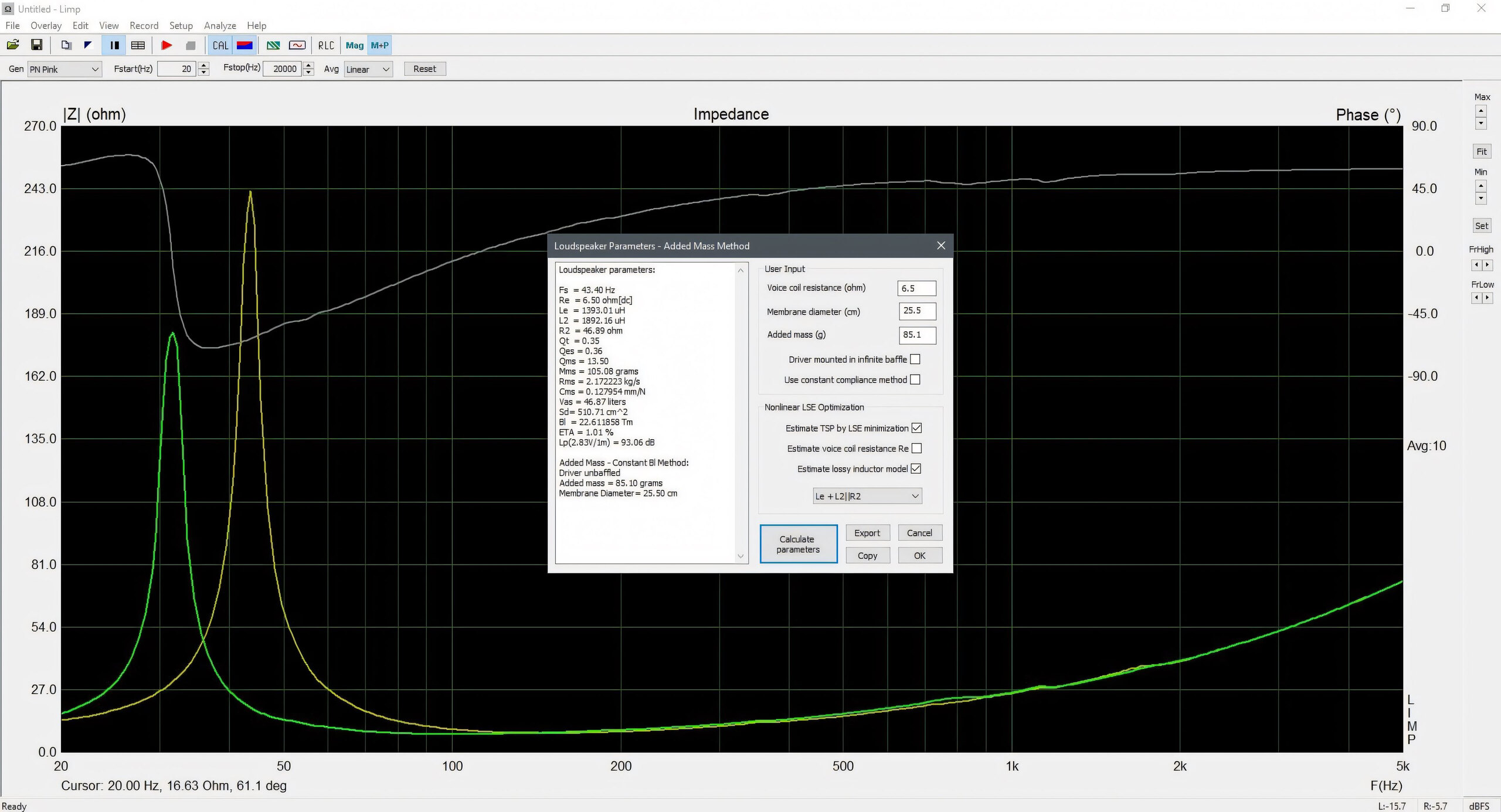 Hier die Impedanzmessung in LIMP. Im Übrigen hat das Bedämpfen des TH12 keinen Einfluss auf die Abstimmung des Viertelwellenresonators.