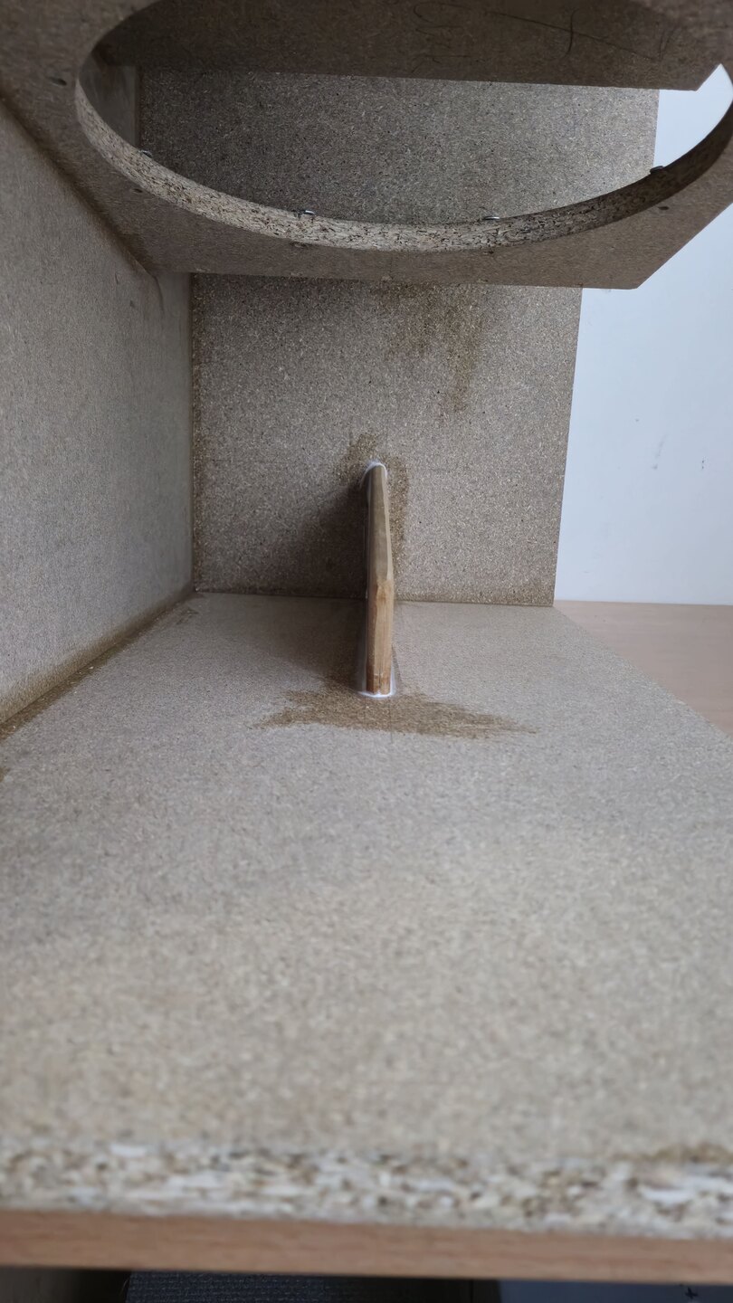Die gut +1dB erhöhte Resonanz bei ca. 165Hz wollte ich mit paar Gramm mehr an Bedämpfung "erniedrigen". :D