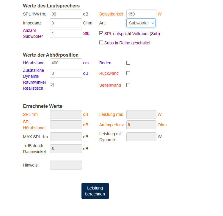 Welche Lautsprecher hast du für die Berechnung angenommen?