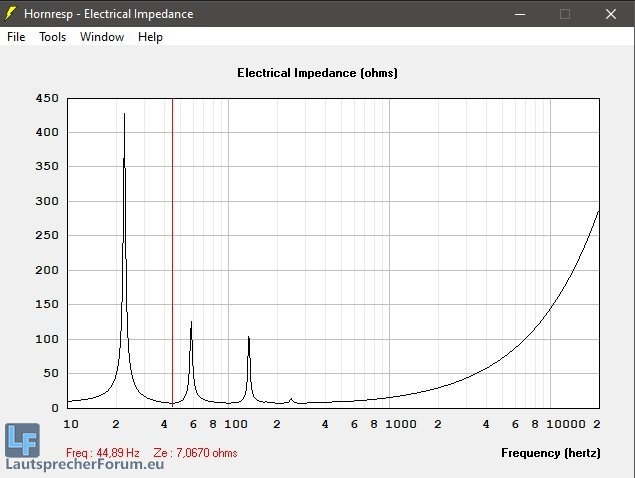 elektrisches Impedanzminimum = Fb 44,89Hz (bei 2.0 x pi Halbraum)