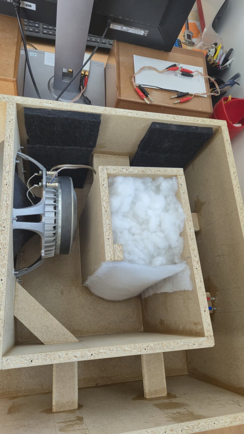 Habe alleine für das Rausfinden der richtigen Bedämpfung ein ganzes Wochenende gebraucht. Und immer hieß es Seitenplatte abschrauben, Bedämpfung rein, raus. Chassis und Port getrennt messen, Messungen zusammen fügen, die Ergebnisse analysieren, die richtigen Schlüsse ziehen und das gleiche noch mal. Und das wieder und immer wieder....