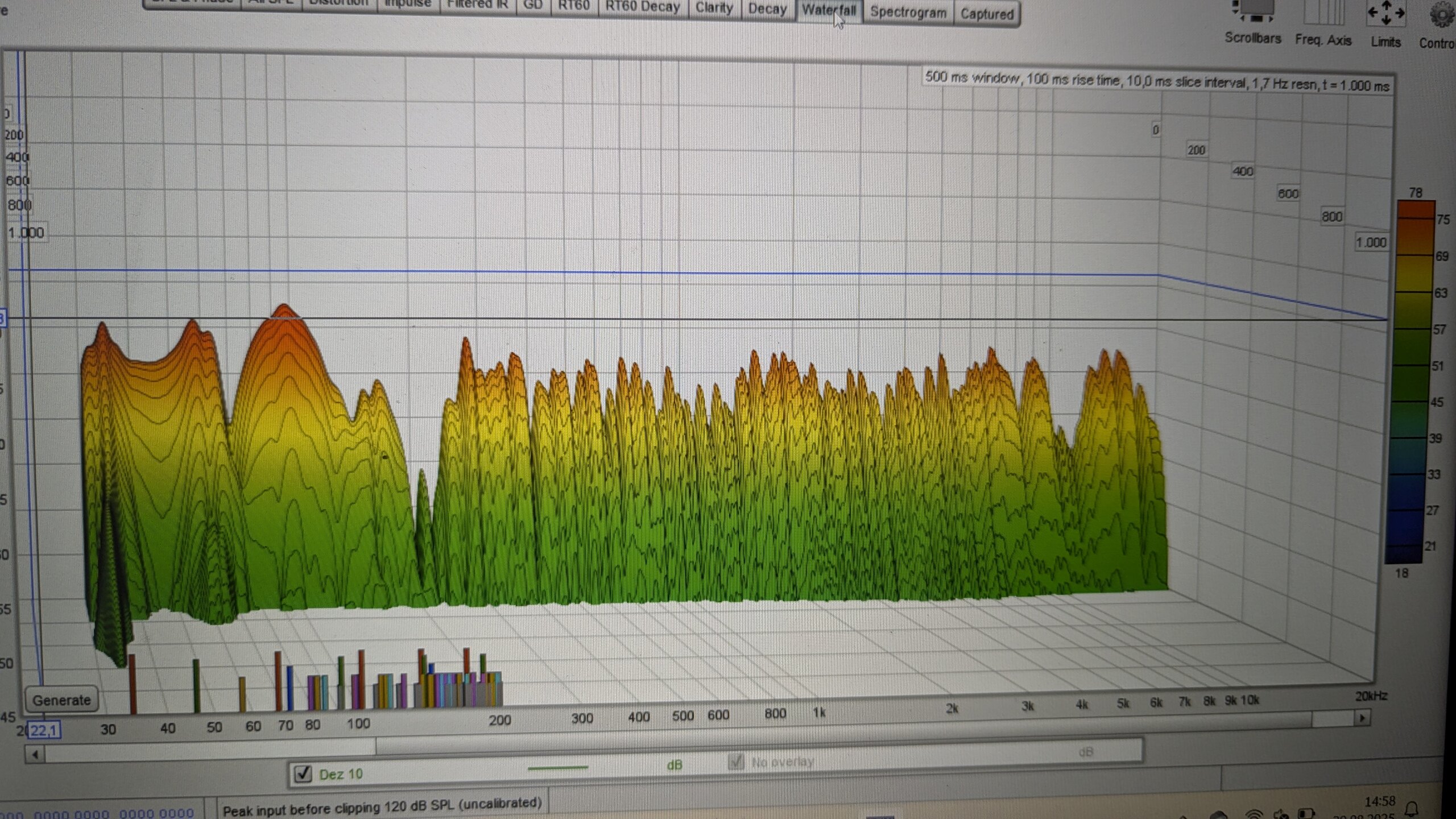 63, 125, 250, 500, 1000, 2000, 4000, 8000, 16000..... Gerade die 31 Hz waren mir wichtig, weil diese Mode am stärksten ist.