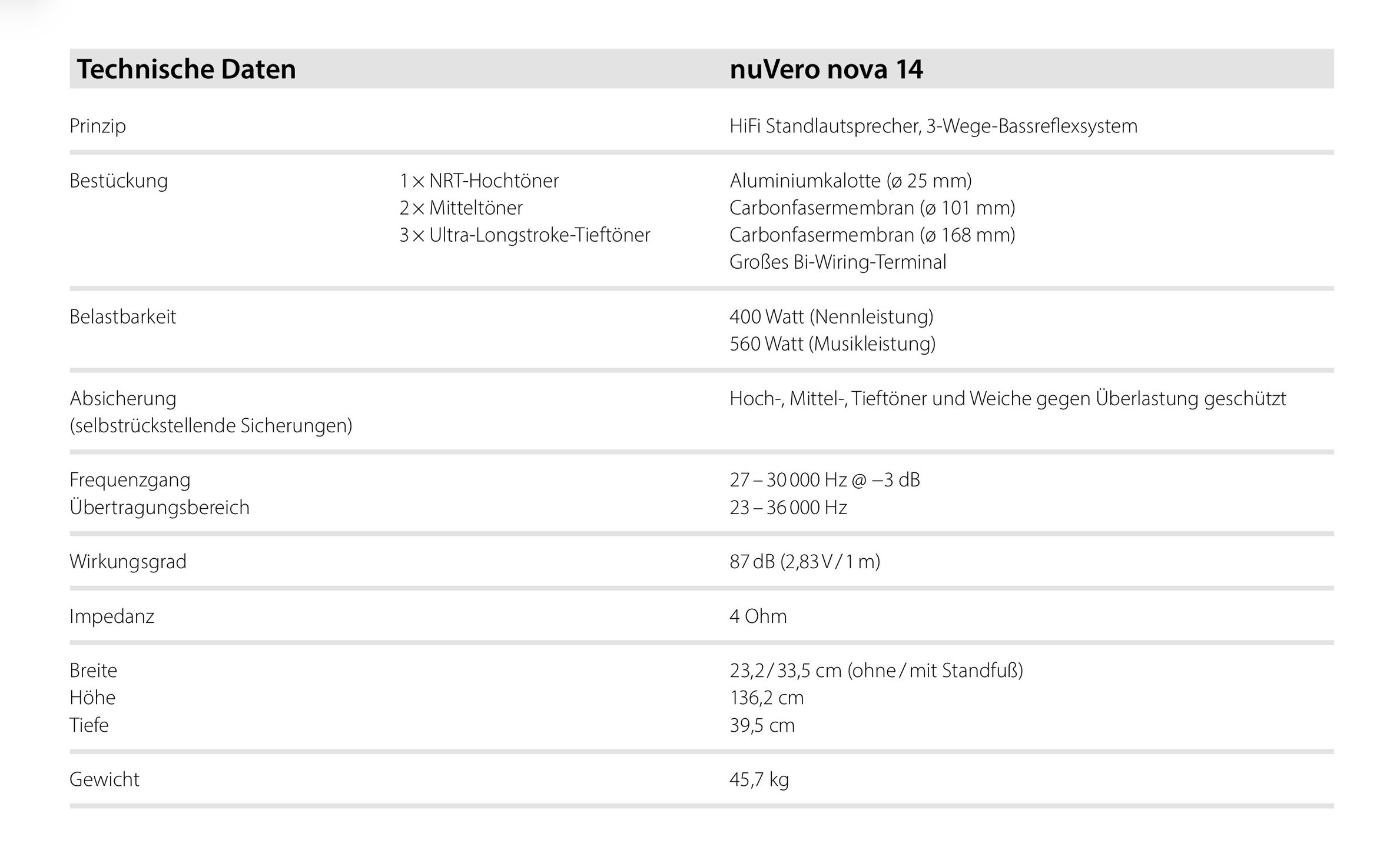 Der Basstreiber der Nova 9 misst 168mm, bei der Nova 14 sind es 168mm und 203mm bei der Nova 18.