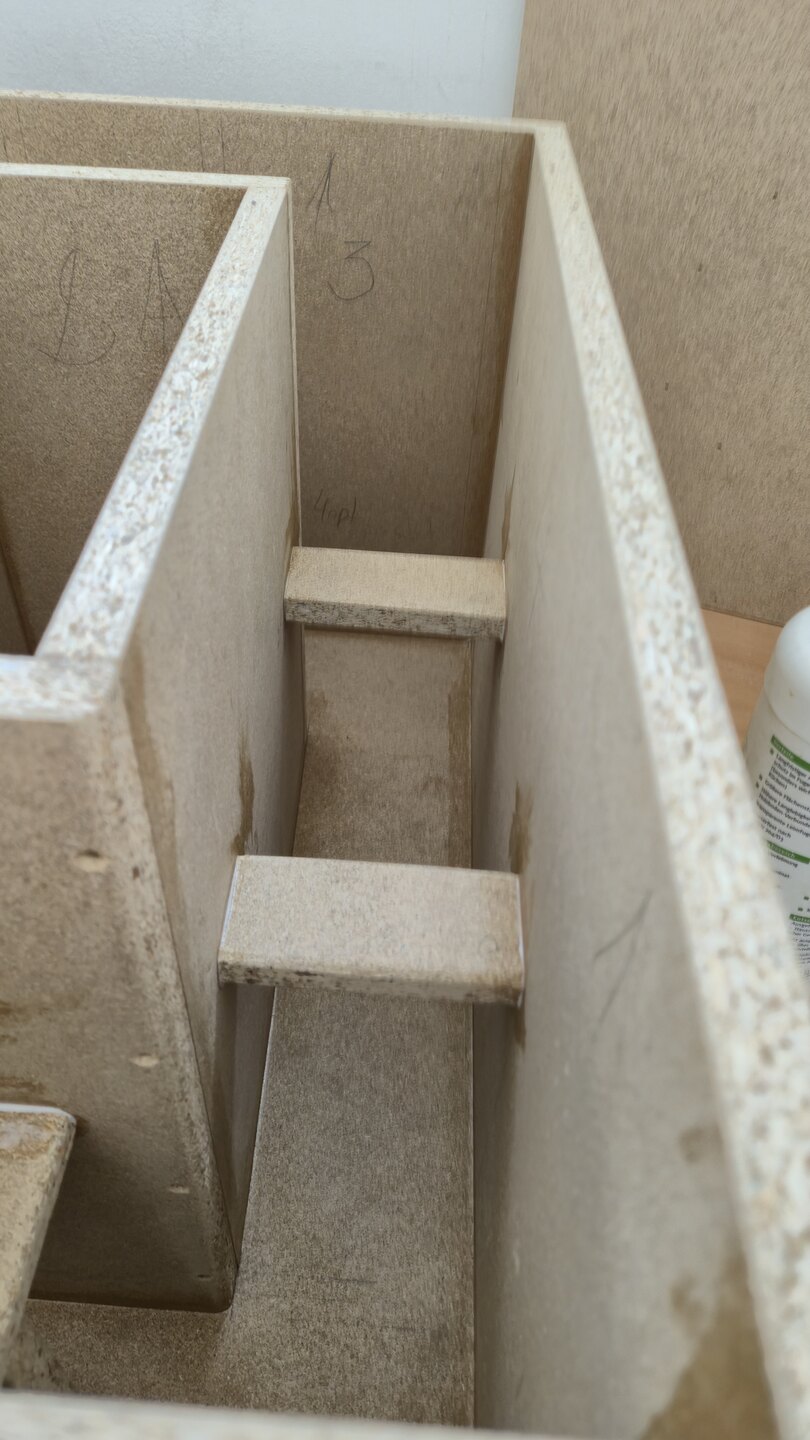 Deshalb drehen wir die Uhr etwas weiter und der Prototyp wurde konstruiert und aufgebaut. Auch diesmal in 16mm Spanplatte.