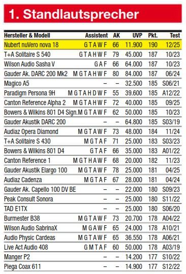 Bei Audio + Stereoplay Bestenliste sind die LS vor Wilson Audio Sasha V und B & W 801 Diamond 4 die wesentlich teurer sind.