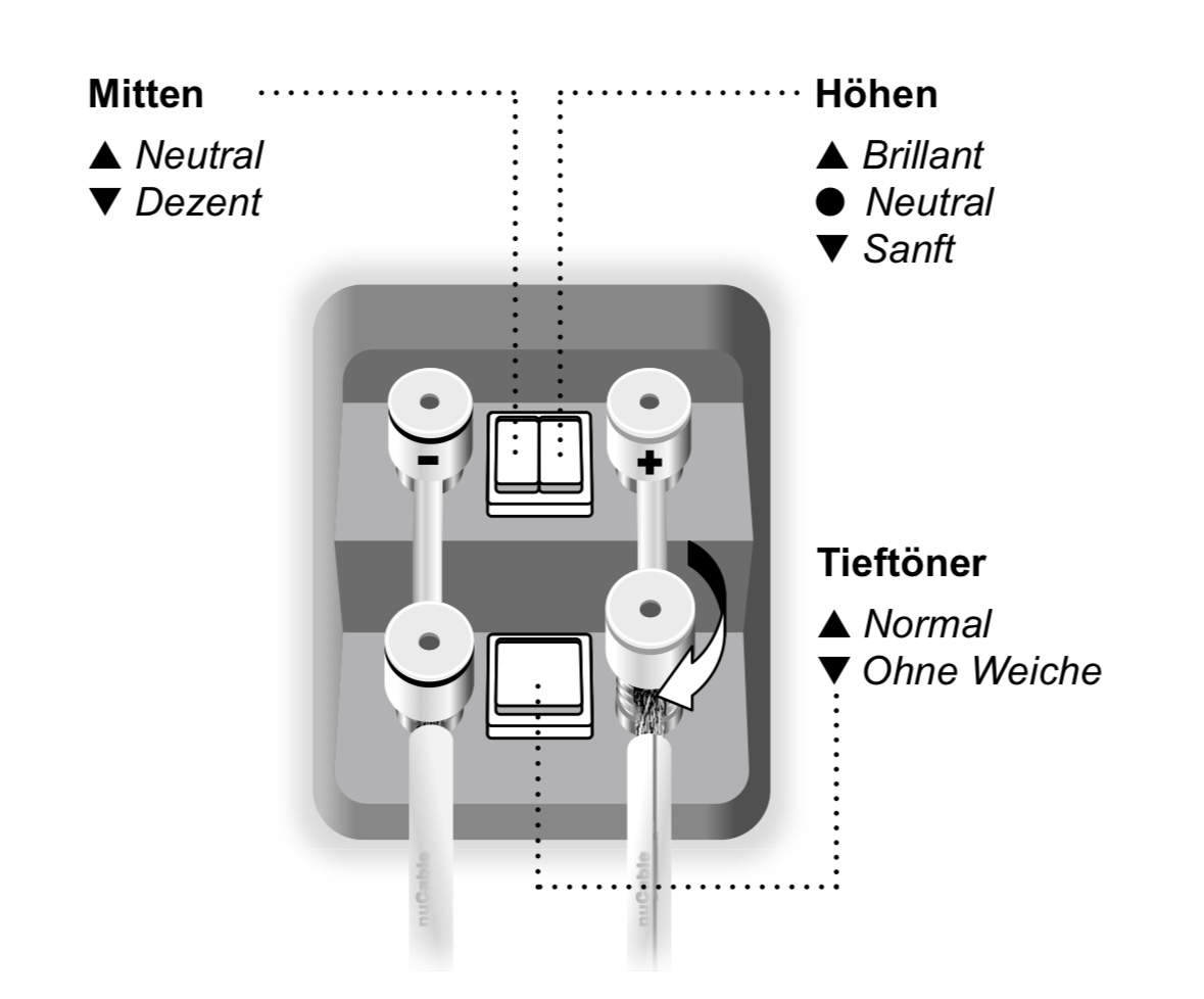 Die nuvero 170 hat ein Bi-Wirering/Amping Anschluss Terminal. Dazu einen Schalter wenn man die Weiche umgehen will um sie dann teilaktiv betreiben zu können, die Parameter sollen im Nucontrol hinterlegt sein, aber die Einstellungen für einen DSP/EQ stehen in der BDA.