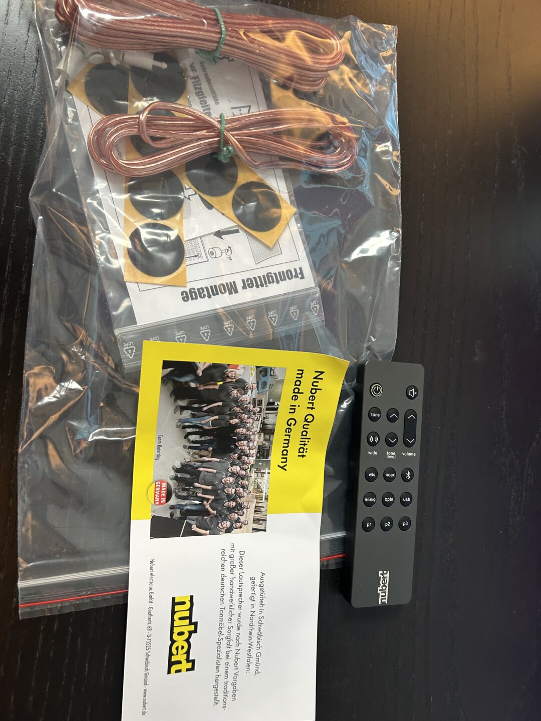 Der Beipackzettel mit dem Hinweis Nubert Qualität made in Germany ist natürlich auch noch mal ein schöner letzter Gruß.