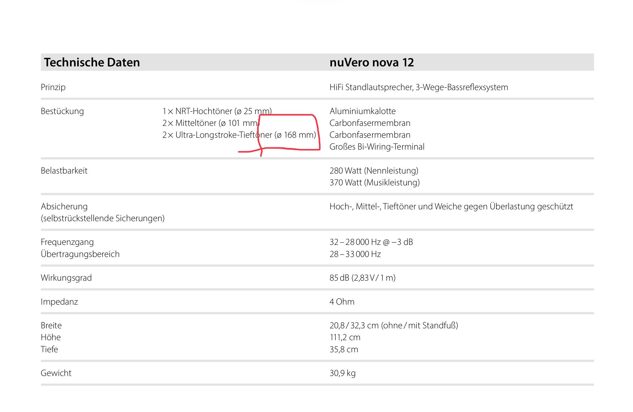 Müssten das bei der 12 nicht eigentlich 148 mm sein? Die Schallwand ist bei der nova 12 immerhin 3 cm schmaler und die Tieftöner sehen auf den Produktbildern auch etwas kleiner aus.