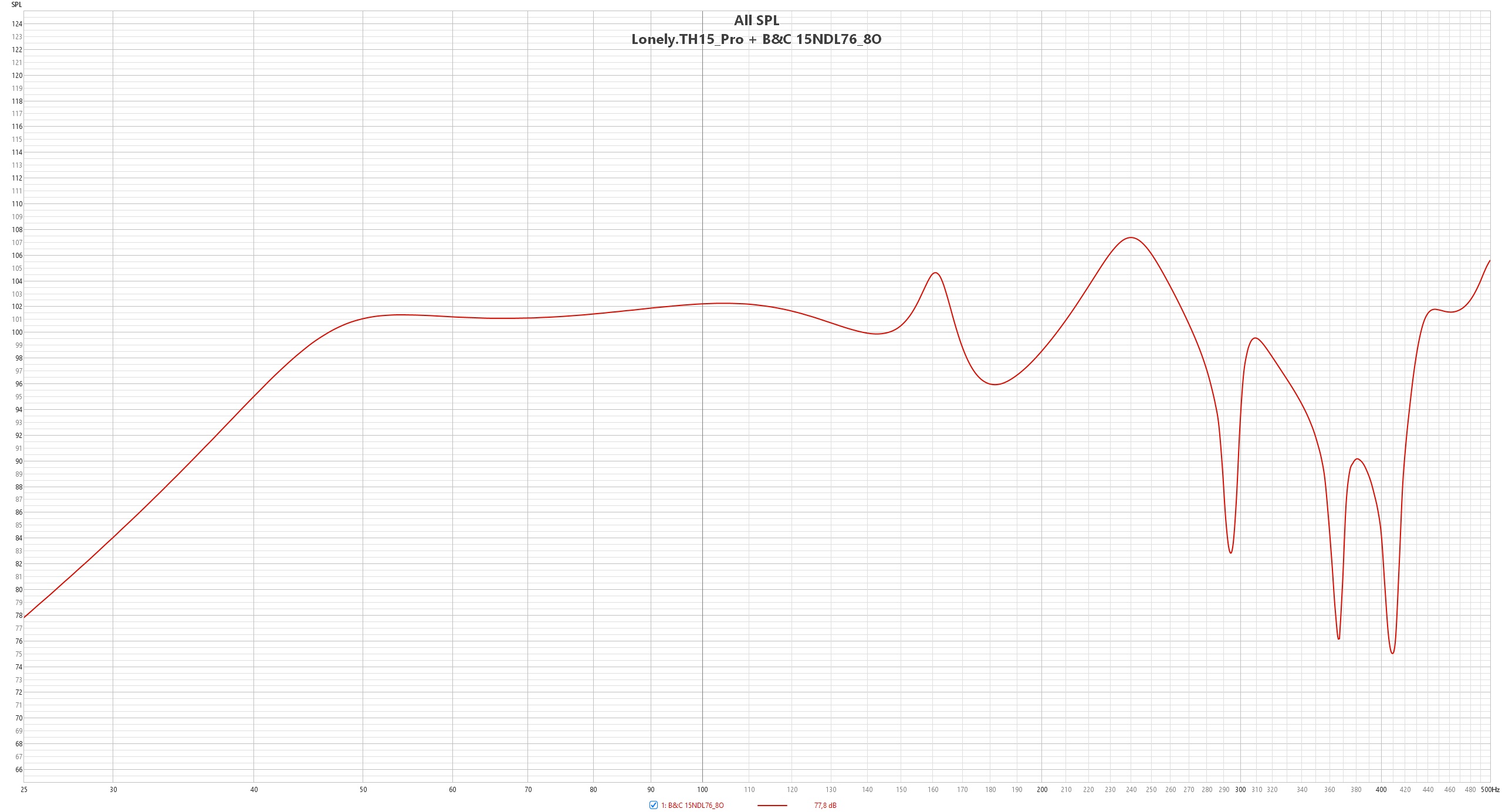 B&C 15TBW100_4O (Peak 46,8Hz, -2,09dB linear, f3 40,65Hz, Xmax +/-12mm)