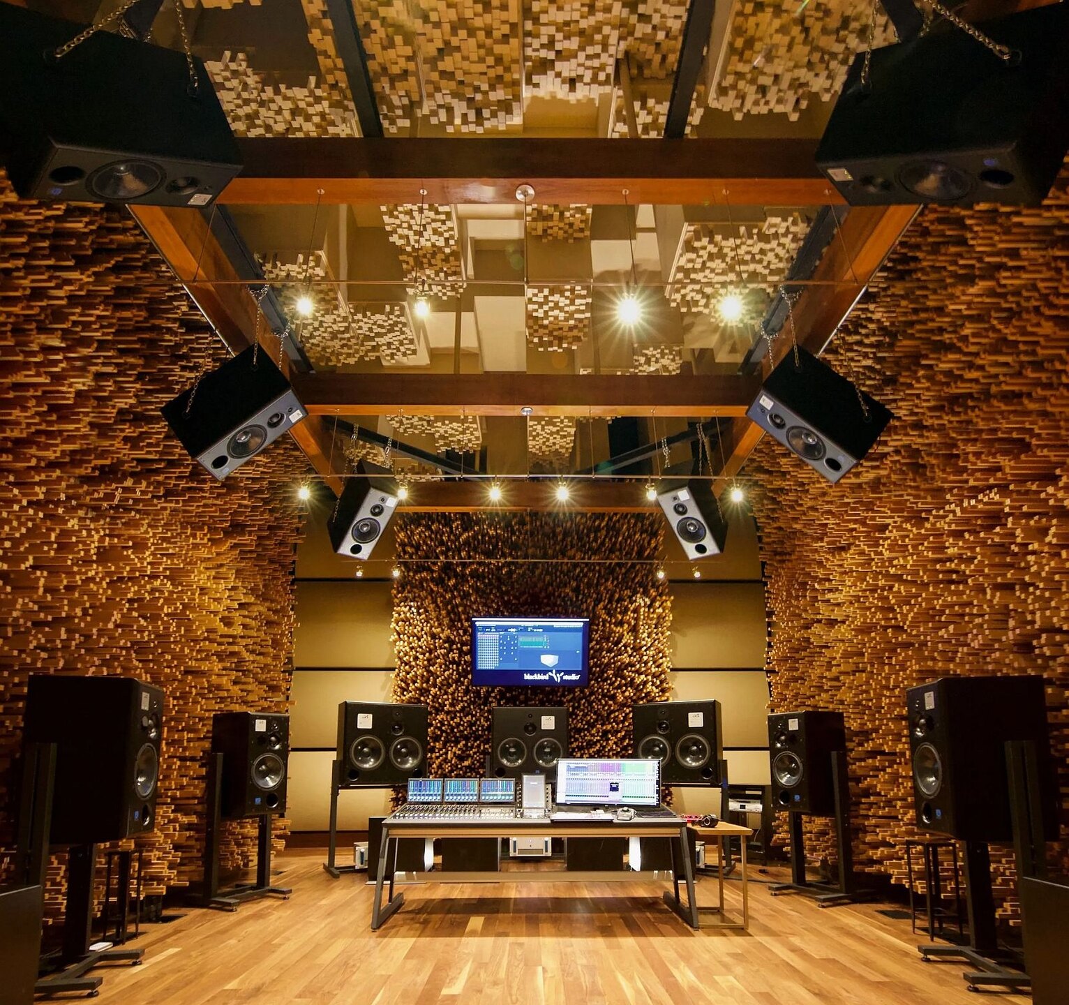 Speakers: Nubert nuVero 140 goldbraun, Yamaha HS7 weiß + HS8S, Nubert nuVero 60 weiß.
