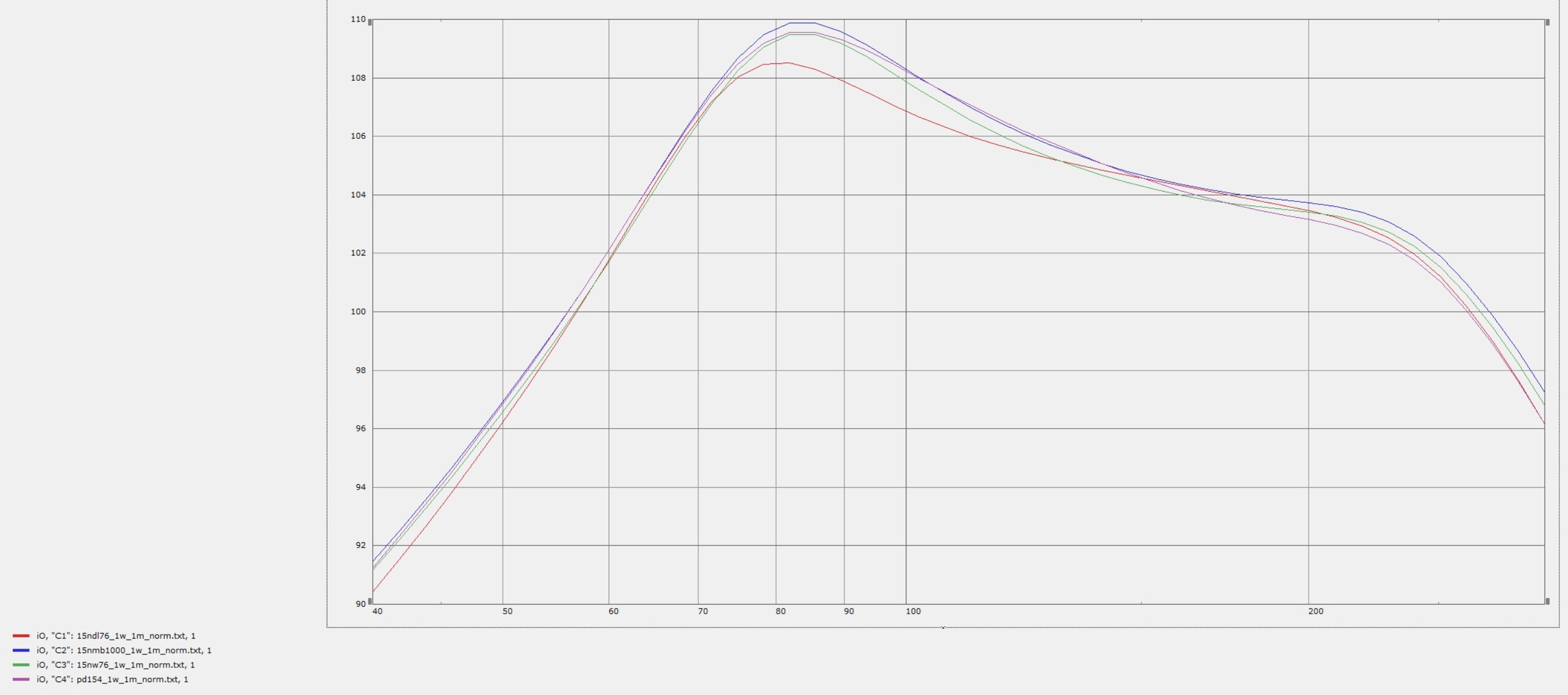 Normiert auf 1W/1m im Nutzbereich (50-200Hz) ist der NDL76 deutlich abgeschlagen, alle anderen sind quasi gleichauf, der 18s performt am besten.