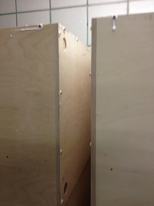 Warum? Der Bastler siegt, nicht weil es zwingend nötig ist, einfach weil es Spass macht....Der Grund des Umstiegs, maximal die Tiefe der Module. Ich stand vor der Wahl neue 10er Gehäuse bauen oder ein neues Projekt anfangen. Ich will bei meinen Audio Zenit Topteilen bleiben und direkt auf die 810 lässt sich das ohne ein V mit Platte drauf nicht stacken, würd heissen 4 bis 6 Subs pro Seite nötig, eher 6 um auf Höhe zu kommen. Die 412 haben genau das Maß um auch ein kleineres System zu ermöglichen, 2 bis 3 Subs und ein Top. Auch wenn das Leistungs/Größe Verhältnis der 10er besser ausfällt. 3 810 sind so groß wie 3 412, und 3 412 werden nicht den Output von 3 810 liefern. Hat alles seine Vor und Nachteile. Warum wieder Multipappen? Ganz einfach weils klanglich eine andere Klasse ist. Basshörner scheiden schon wegen den Abmaßen aus. Direktvergleich 10er/12er steht noch aus. Sollte aber klar sein wie es ausgeht....