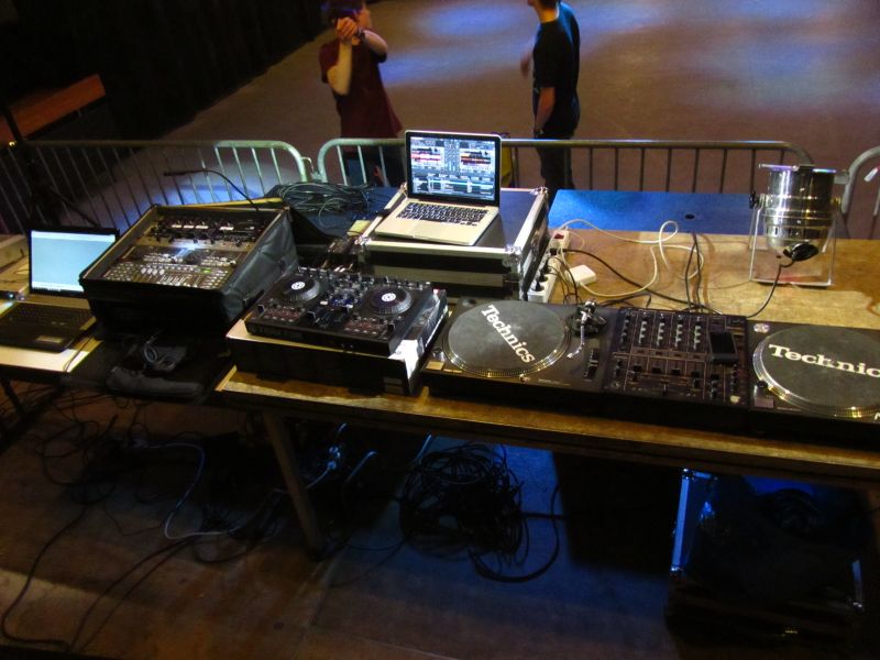 Sonstiges: Anmerkung zu den Bildern: Licht (dieses verkleidete Rack mit Djmixer und Dmxpult) kam nicht von uns. Wir haben lediglich zwei Beamer mit Visuals und einen Laser am Start gehabt.