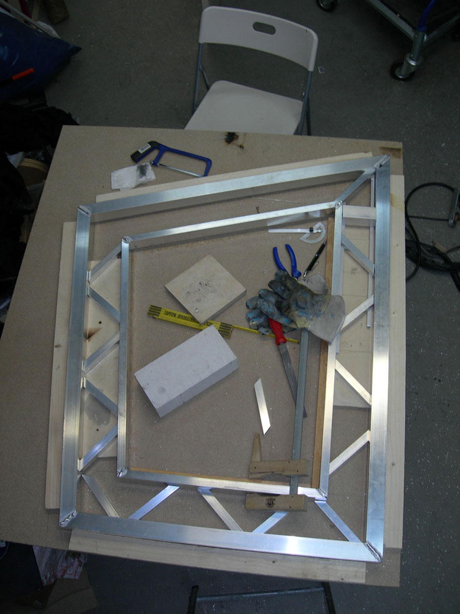 Ich find das Projekt immernoch echt genial. Was für ein Profil hast du aussen verwendet? Hast du die Verstrebungen aus demselben Profil gemacht wie den inneren Rahmen?