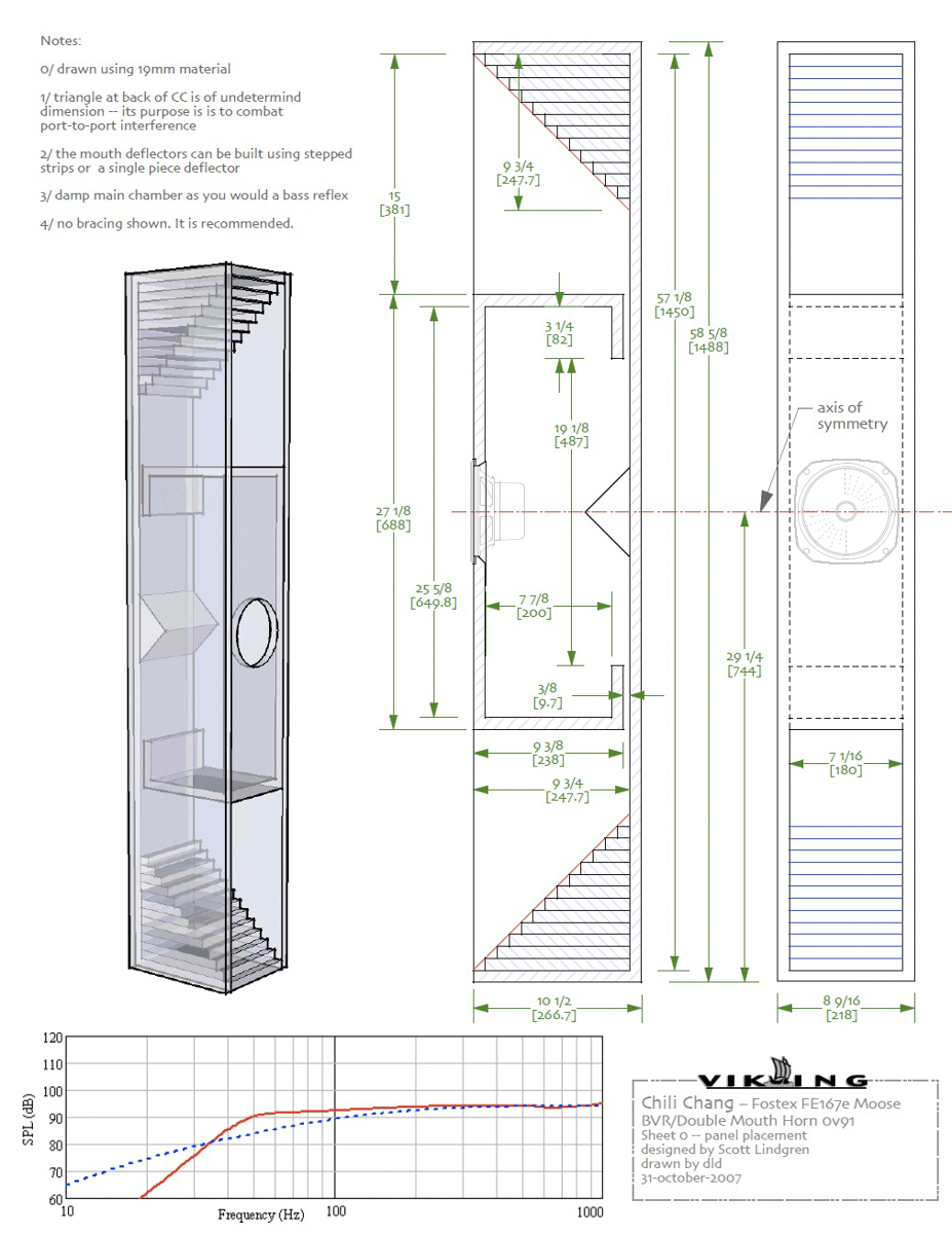Zur Dämmung: Im Hifi-Bereich wird gerne das Damping 10 empfohlen. Ich würde die Innenwände des Mittelteils damit auskleiden, aber zu den Kanälen oben und unten Platz so 3cm Platz lassen.
