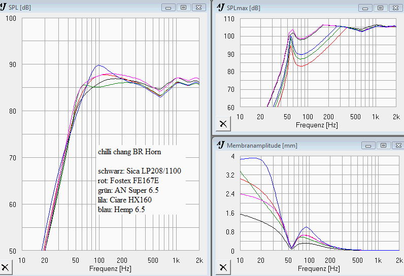 Der Fostex scheint mir der Simulation nach aber im Bassbereich schnell aufzugeben, ok bei 0,6mm XMax auch nicht verwunderlich, wenn das eine Simulation mit 1W ist solltest du also vorsichtig sein.