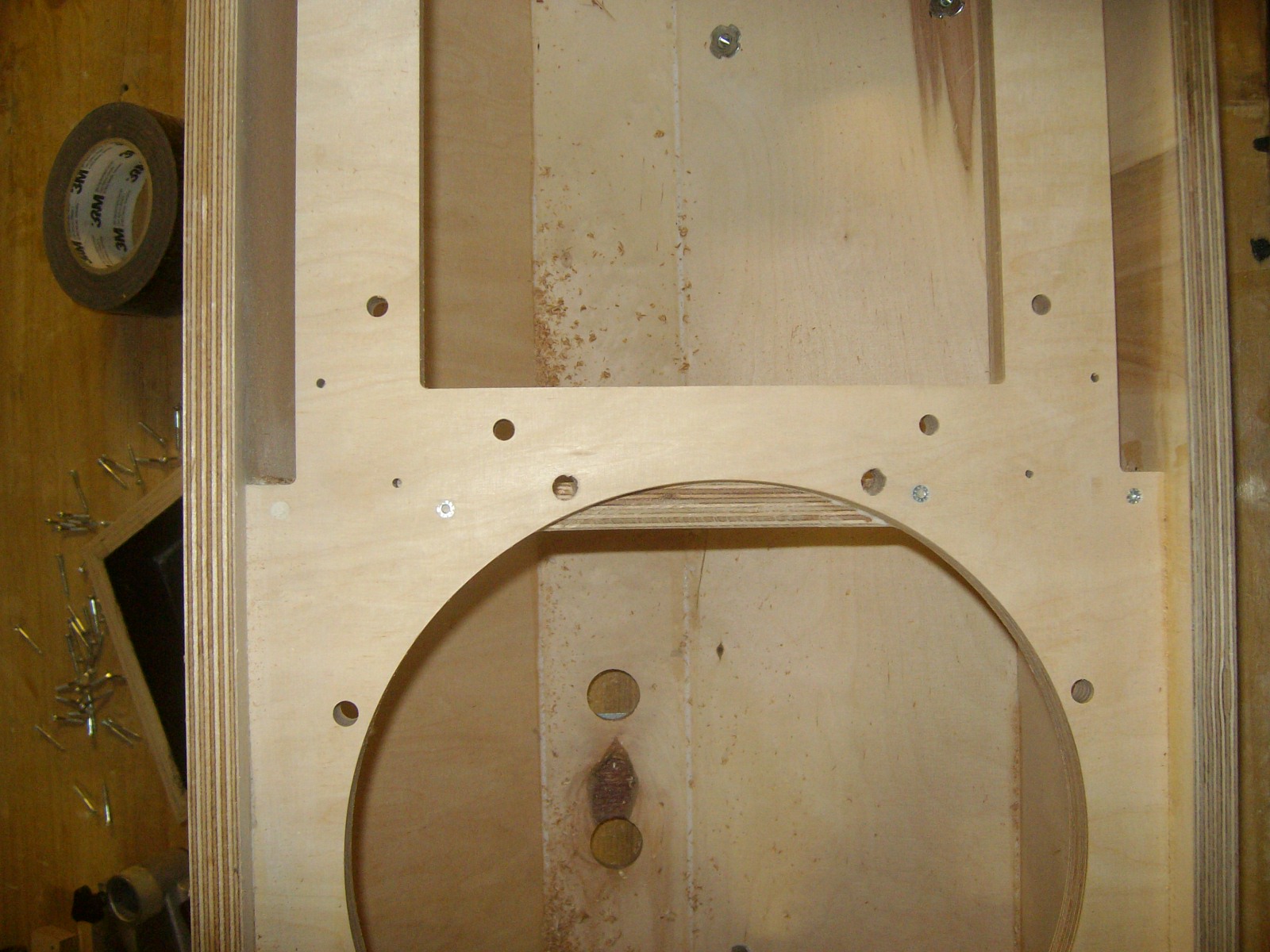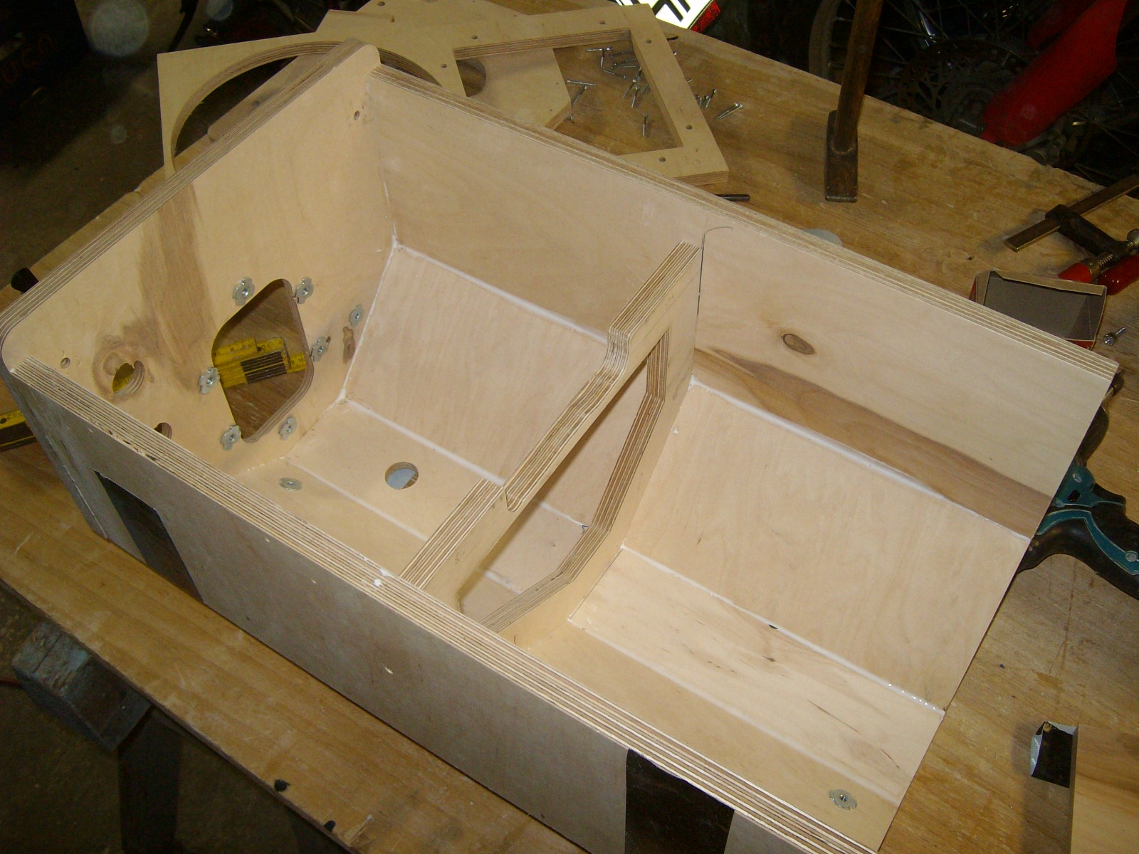 Griffkästen kleben und verschrauben so wie die Schallwand verdoppeln.
