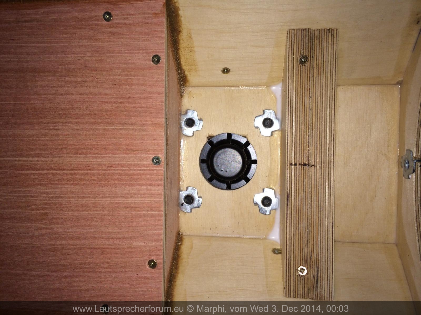 Falls die Boxen noch auf sind und du dran kommst: Setze 1-2 Tackernadeln über die Einschlagmuttern wenn du noch dran kommst, damit diese sich nie lösen können wenn man die ein paarmal rein und raus schraubt. Alles andere ist sonst verdammt nervig