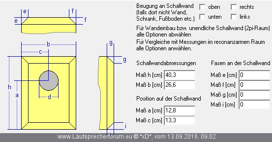 Dazu auch noch die Maße der Frontfläche, wie auch die Position der Komponenten wie hier zu sehen. Benötigt werden a,h, c und b.