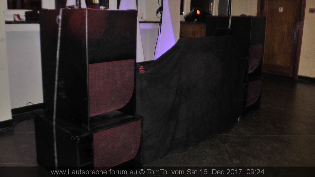 gestern wurde noch einmal Probe gehört mit 2 Thomann 18-500A als Tiefbassunterschützung. Ich muss sagen, dass ich nicht erwartet hätte was aus diesem Setup rauskommt. Schöner Tiefbass... toller Kick (ja aus Tapped Hörnern :O ) und ordentlich Pegel. Noch ein kleines Bild ;)