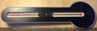 Auf der Unterseite ist ein Fadenkreuz eingraviert, hier kann man ganz einfach den Radius von der Mitte des Dorns zum Fräser abmessen. Preis 30€ zzgl. Versand und MwSt.