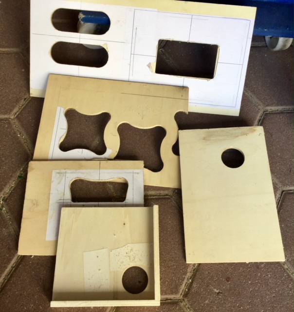 Ich hätte jetzt im Vorhinein die Butterflyausschnitte, die Fräsung für den Flansch und die Speakonfräsungen gemacht.