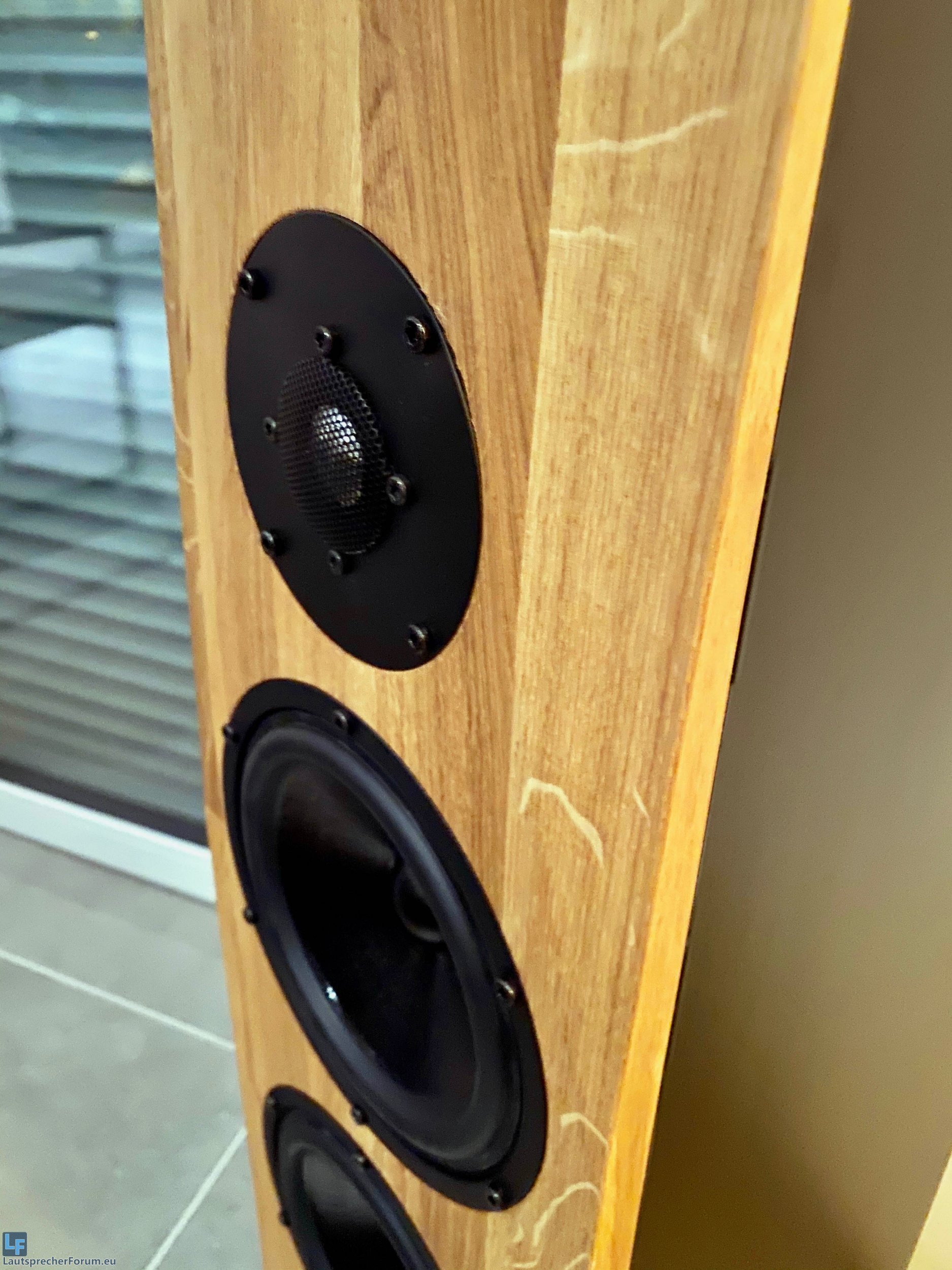 Zwei Tieftöner bringen zwar die Impedanz auf 4 Ohm, jedoch kann trotzdem mit einem Handelsüblichen HiFi Verstärker so auch der nötige Tiefton Pegel erreicht werden. Der Bass ist spürbar, aber trotzdem nicht überbetont. Und das ohne Subwoofer.
