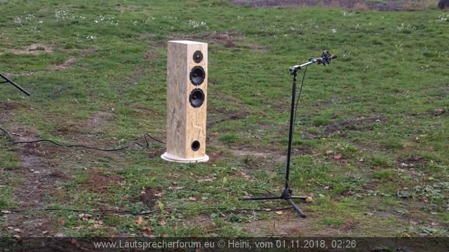 Abstand war ca. 2m vor der Box auf Höhe des oberen Tieftöners. Untergrund war die Wiese, die auch auf dem Bild im ersten Beitrag zu sehen ist. Relativ fester Sand Boden, teilweise mit Gras überwachsen.
